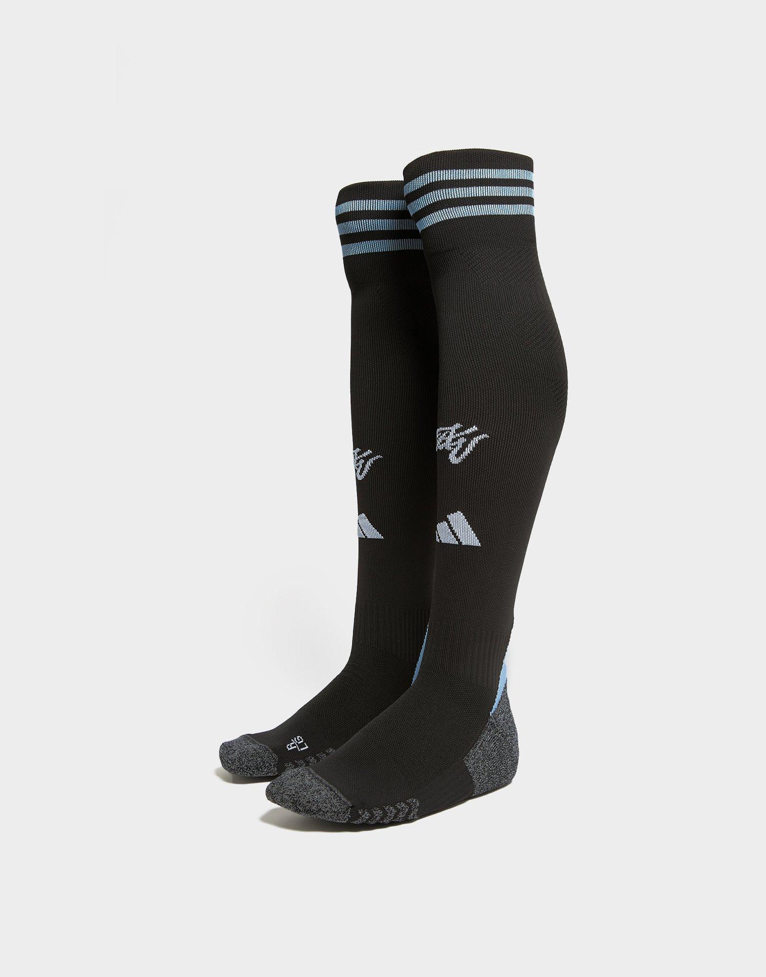 Rep your team on the pitch with these men's Aston Villa FC 2025/26 Away Socks from adidas. In a Black and Glow Blue colourway, these socks are made from a soft, stretchy cotton and recycled polyester blend for total comfort. They come in a knee-length and have a FORMOTION design for the perfect fit to each foot, while ventilation zones keep you feelin cool. Finished up with a woven 'AV' wordmark and the Performance logo. Machine washable. | JN8082