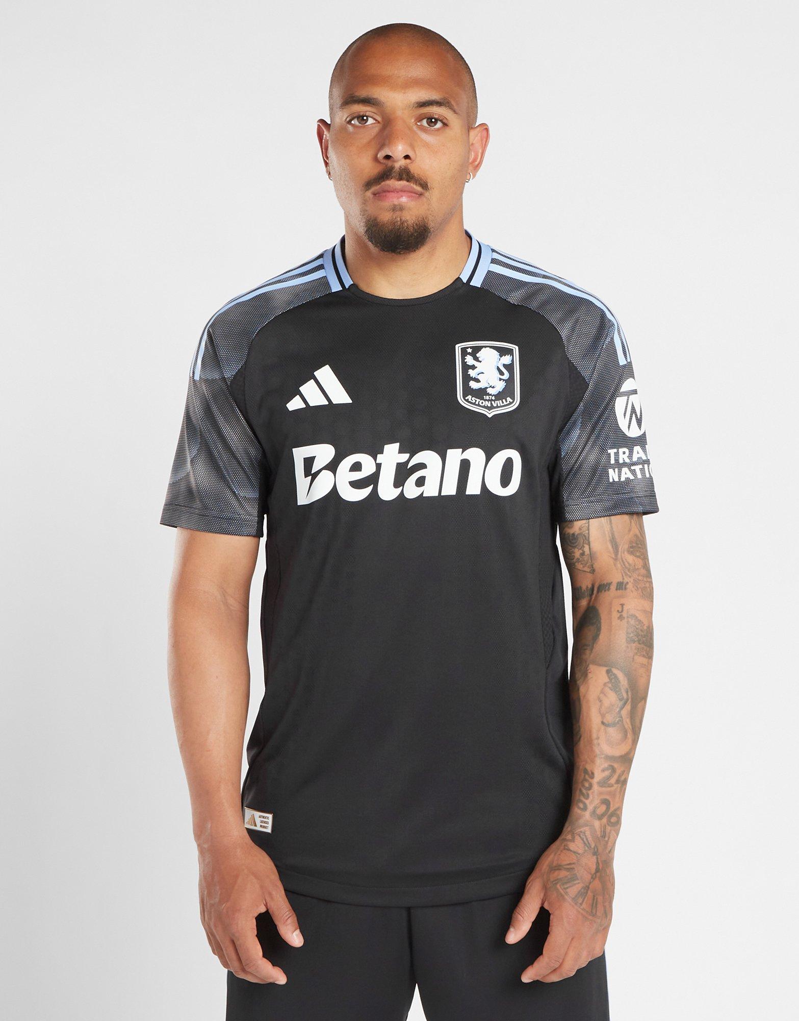 Take a piece of Birmingham with you with this men's Aston Villa FC 2025/26 Match Away Shirt from adidas. In a Black colourway with Glow Blue trims, this slim-fit shirt is made from structured, lightweight recycled polyester that's engineered to keep air flowing. Sweat-wicking HEAT.RDY tech regulates your body's temperature for cool comfort, while the crew neckline pairs with short sleeves and the 3-Stripes. Finished with the Performance logo and Aston Villa badge on the chest as well as a Villans sign-off to the back of the neck. Machine washable. | JN8033