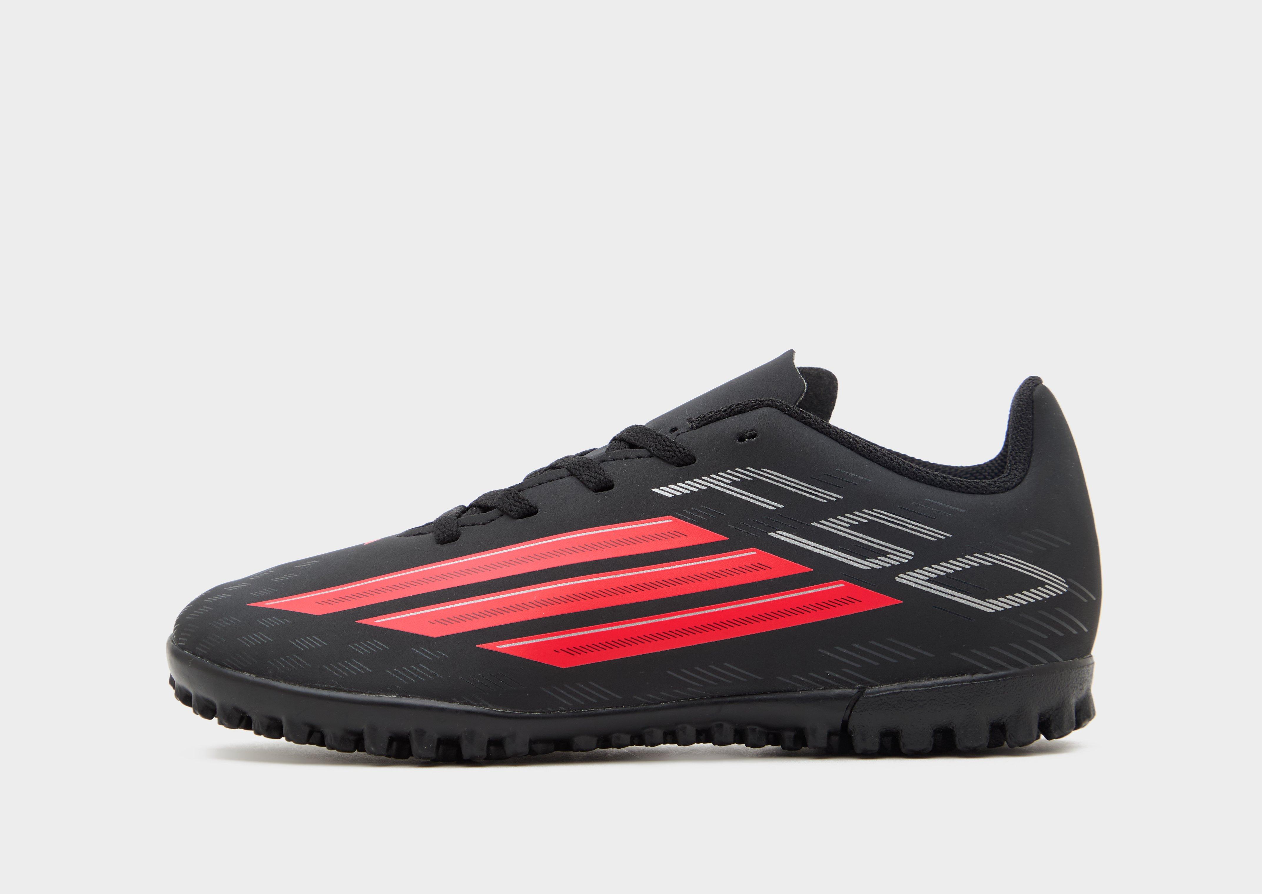 Full flow, unlocked. These children's F50 Club TF football trainers from adidas are made for hitting top speed. Underfoot, the studded rubber outsole grips their every move so they can shift directions at pace. Above that, the moulded synthetic upper features Lucid Red 3-Stripes for fast play. Finished with tonal F50 branding. | JS1490
