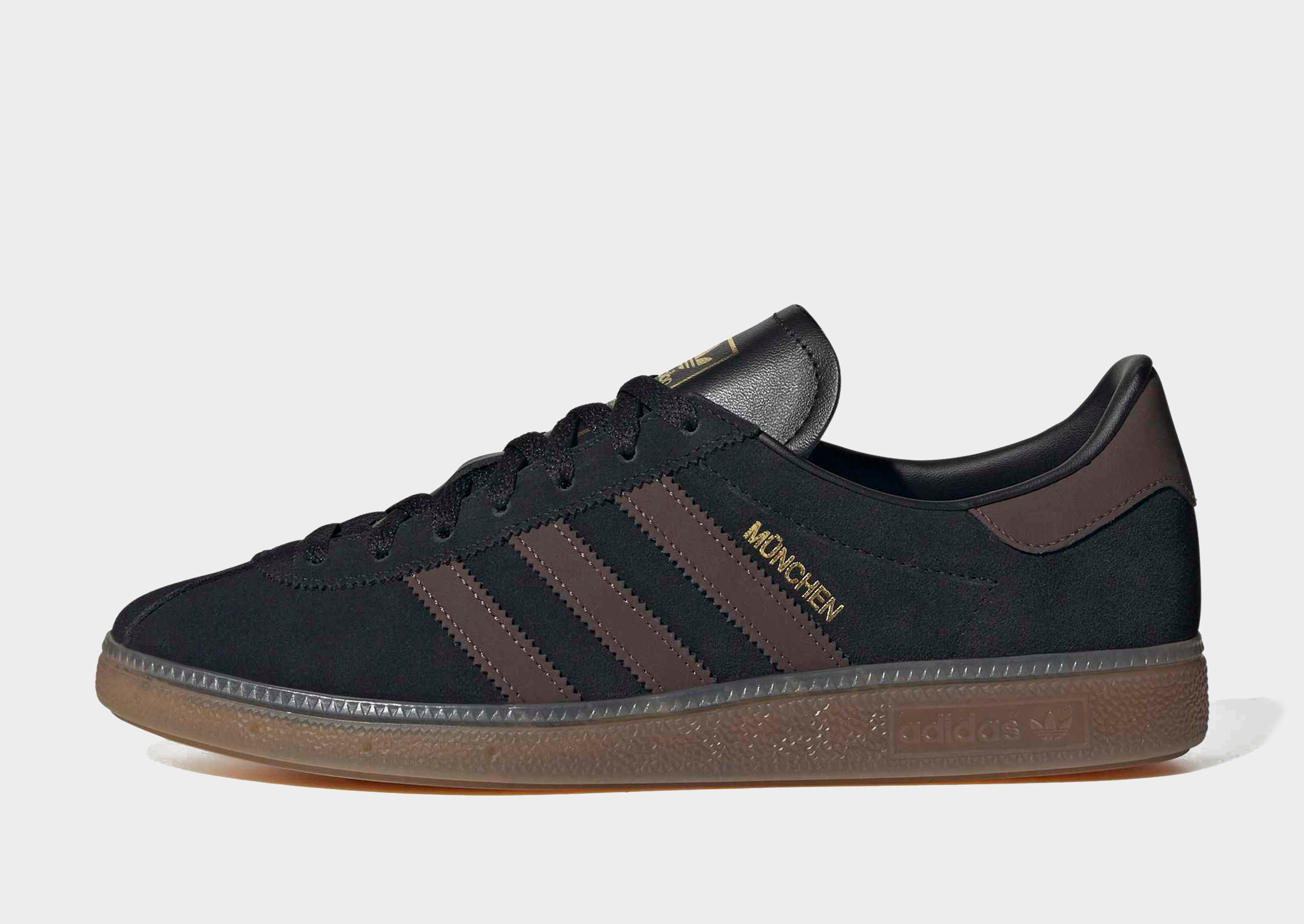 A terrace icon goes JD-exclusive. These mens Munchen trainers from adidas Originals land in Core Black and Brown. Theyve got a smooth suede upper, with synthetic lining to keep things snug. A gum rubber outsole offers grippy traction. Finished with 3-Stripes, a Munchen wordmark and Trefoil branding. | KK2937