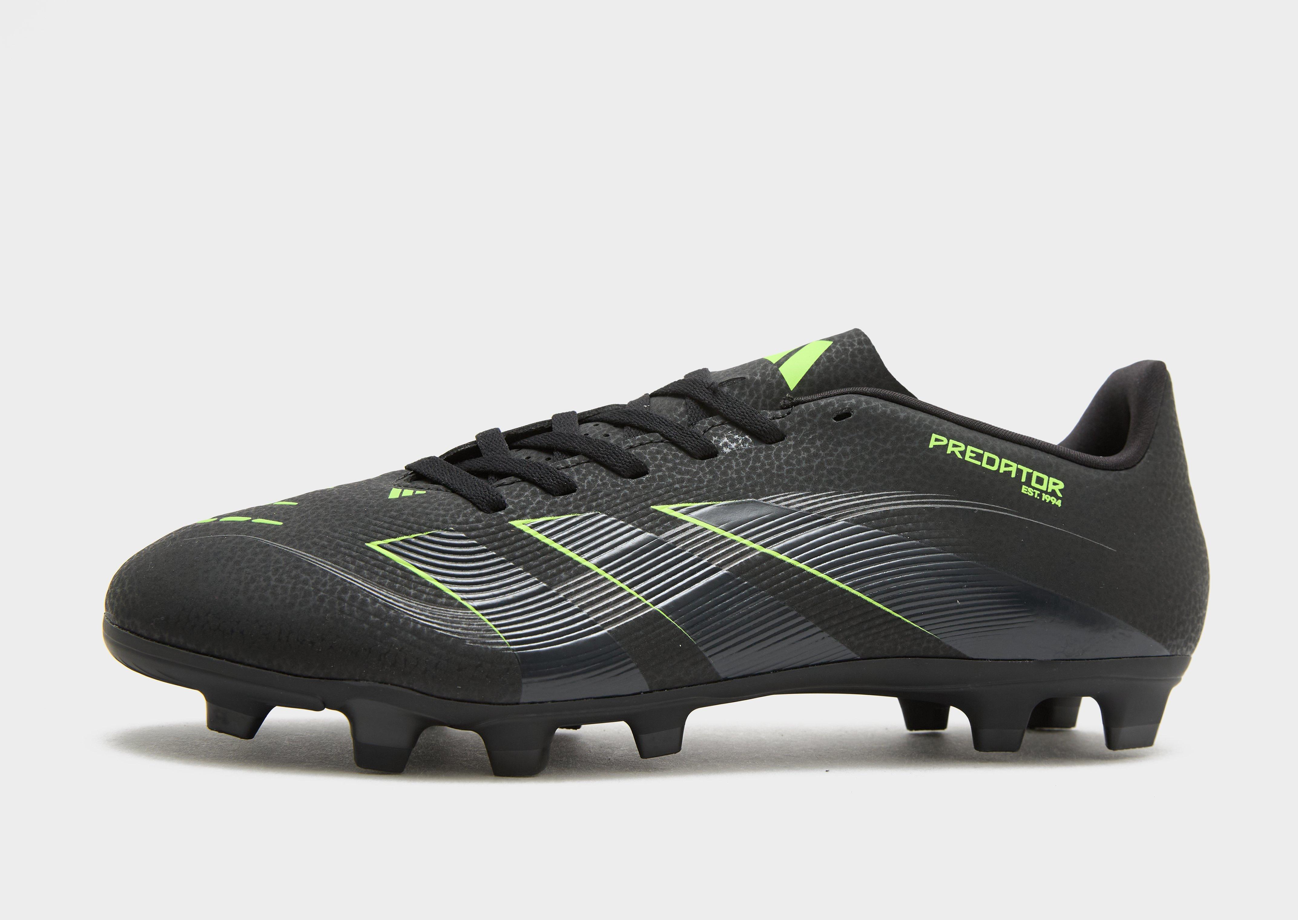 Hit the pitch and put in a big performance in these men's Predator Club FG football boots from adidas. In a Core Black colourway, these boots are cut from durable synthetic material with Strikeprint texturing for accurate passing and shooting. They feature a lace fastening to lock you in, with a textile lining for a snug, secure fit. Underfoot, they sit on a molded stud plate for traction and acceleration on firm ground. Finished up with 3-Stripes in Carbon and Lucid Lemon branding. | JH8848