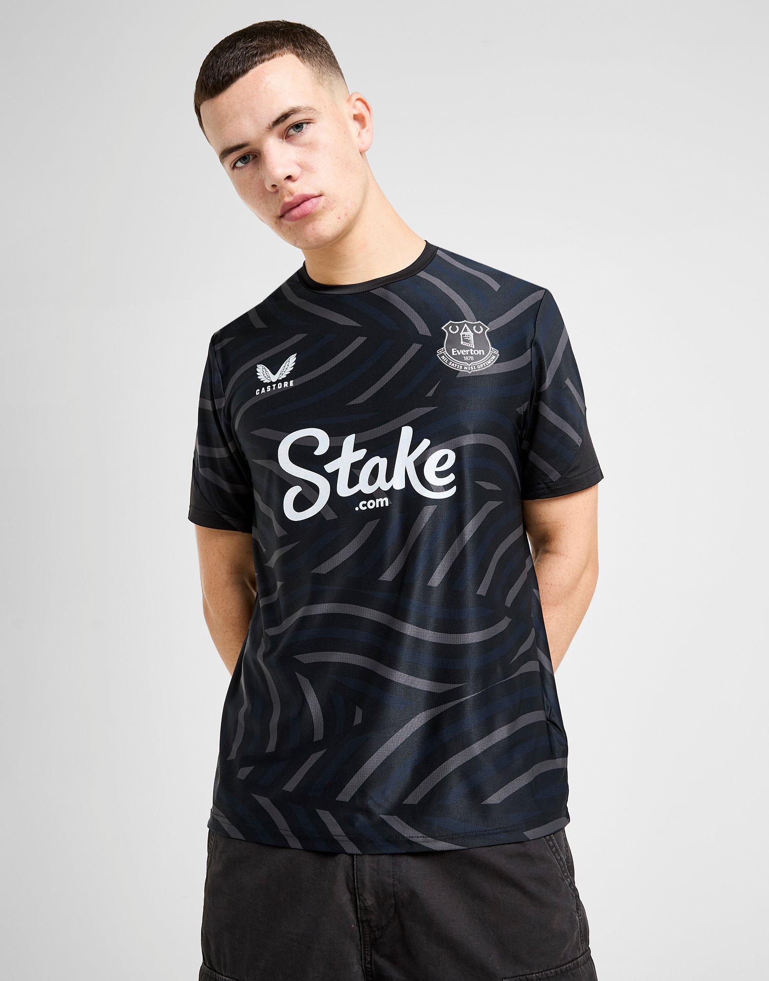 Ready to back the Toffees? This men's Everton FC Pre Match T-Shirt lands in Black. It's got a crew neckline and short sleeves for a classic cut. Don't sweat it, AerTek fabric is gonna keep things cool. Signed off with a Castore logo and Everton crest to the chest. Machine washable.