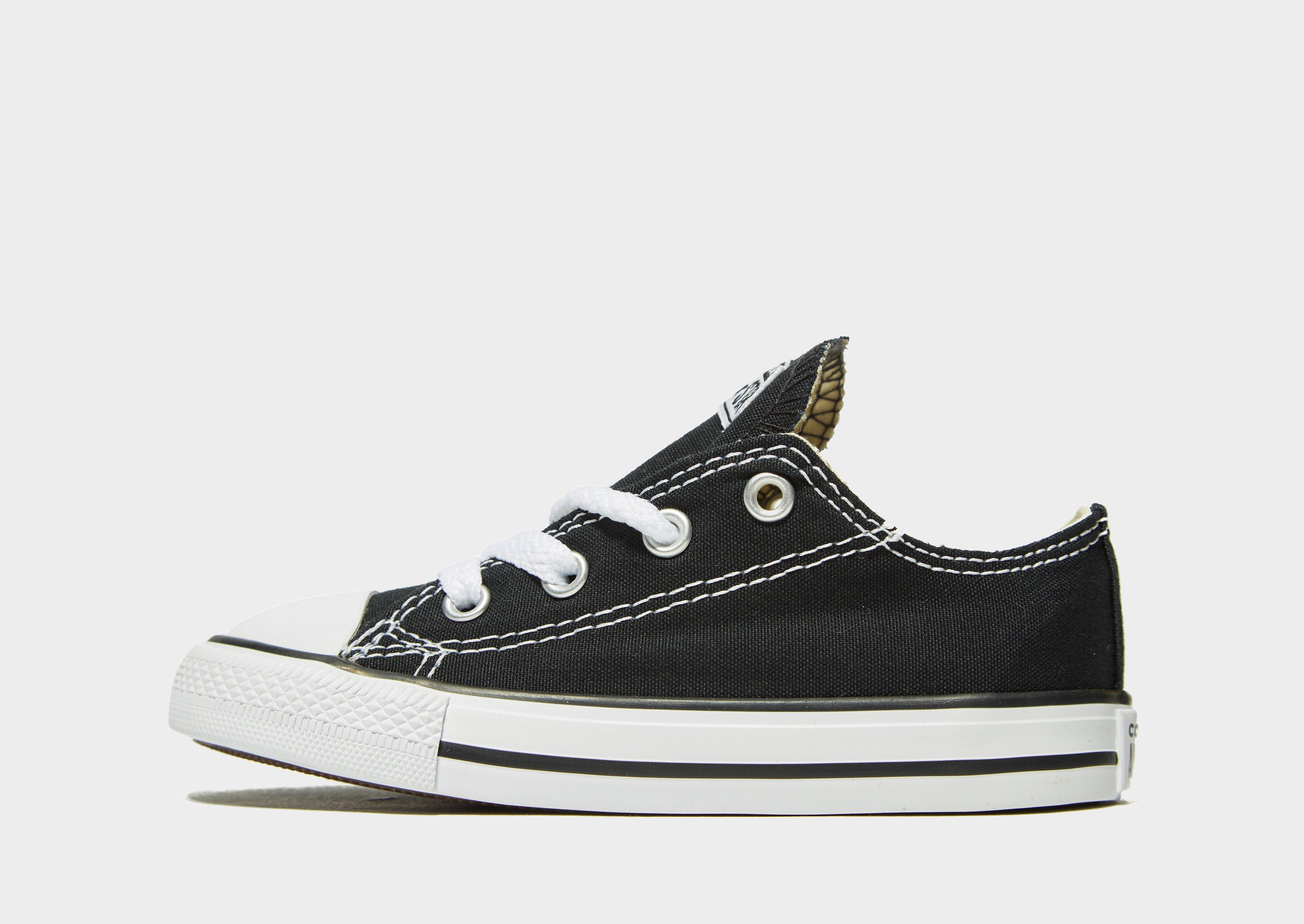 Keep their sneaks simple and signature with these infants' All Star Ox trainers from Converse. A true classic, these iconic shoes first hit the shelves in '57, and the design hasn't changed since. Built with a durable canvas upper in a classic black colourway, the downsized sneaks offer comfort and flexibility that's perfect for your little one. Sat on the brand's infamous striped midsole, they're finished with a gum rubber outsole, signature All Star branding to the tongue and a license plate to the heel._