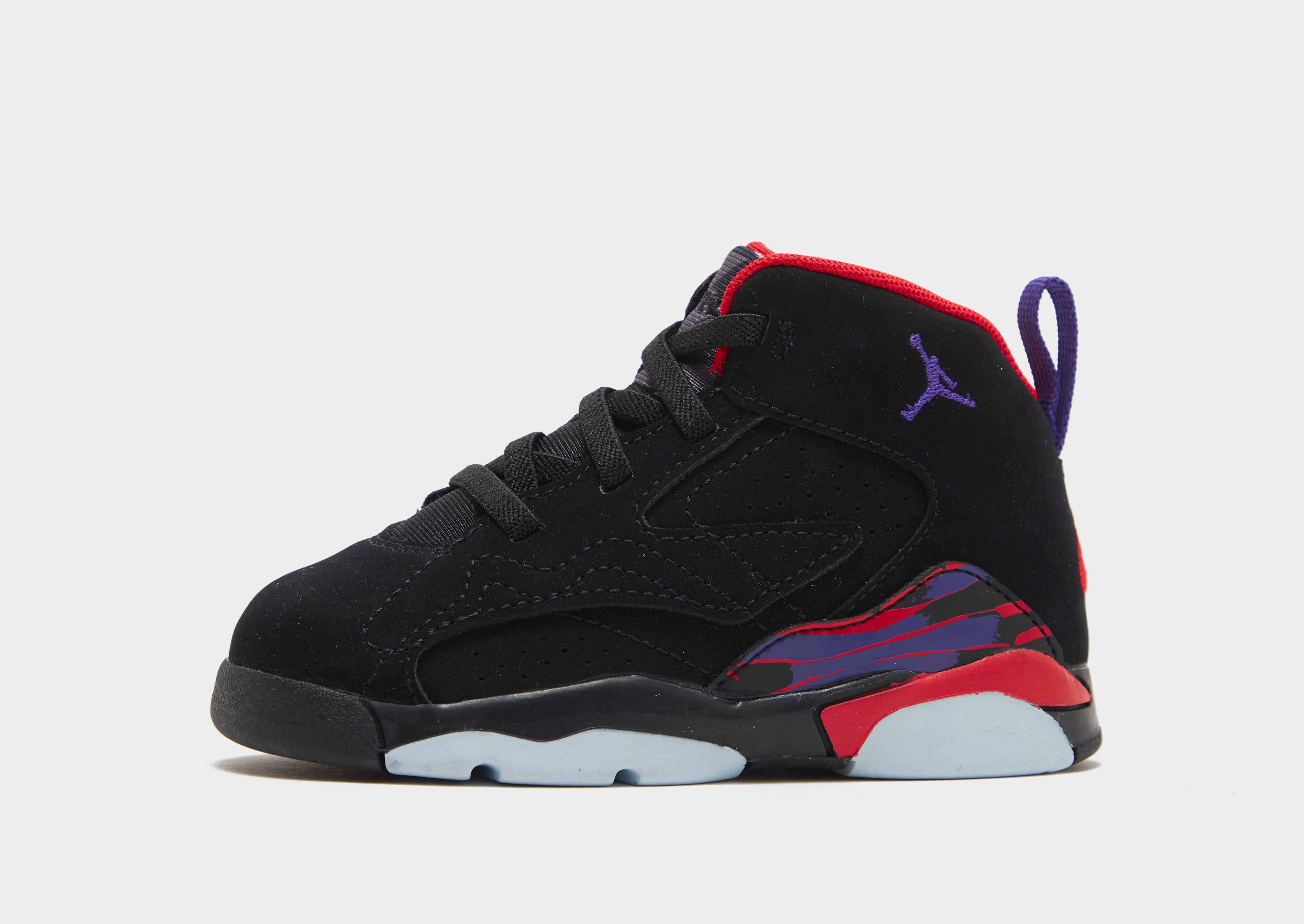 Level up your mini-me's style with court energy in these infants' AJ MVP trainers from Jordan. In a Black colourway with Dark Concord and University Red accents, these downsized icons take cues from the AJ6, 7 and 8 across the suede and synthetic upper. They have tonal laces, Velcro sides and a heel pull for easy entry, as well as a padded tongue and collar for a comfy fit. Sat above a cushioned midsole and a durable rubber outsole, they're finished off with Nike Futura branding to the heel and the Jumpman at the ankle.