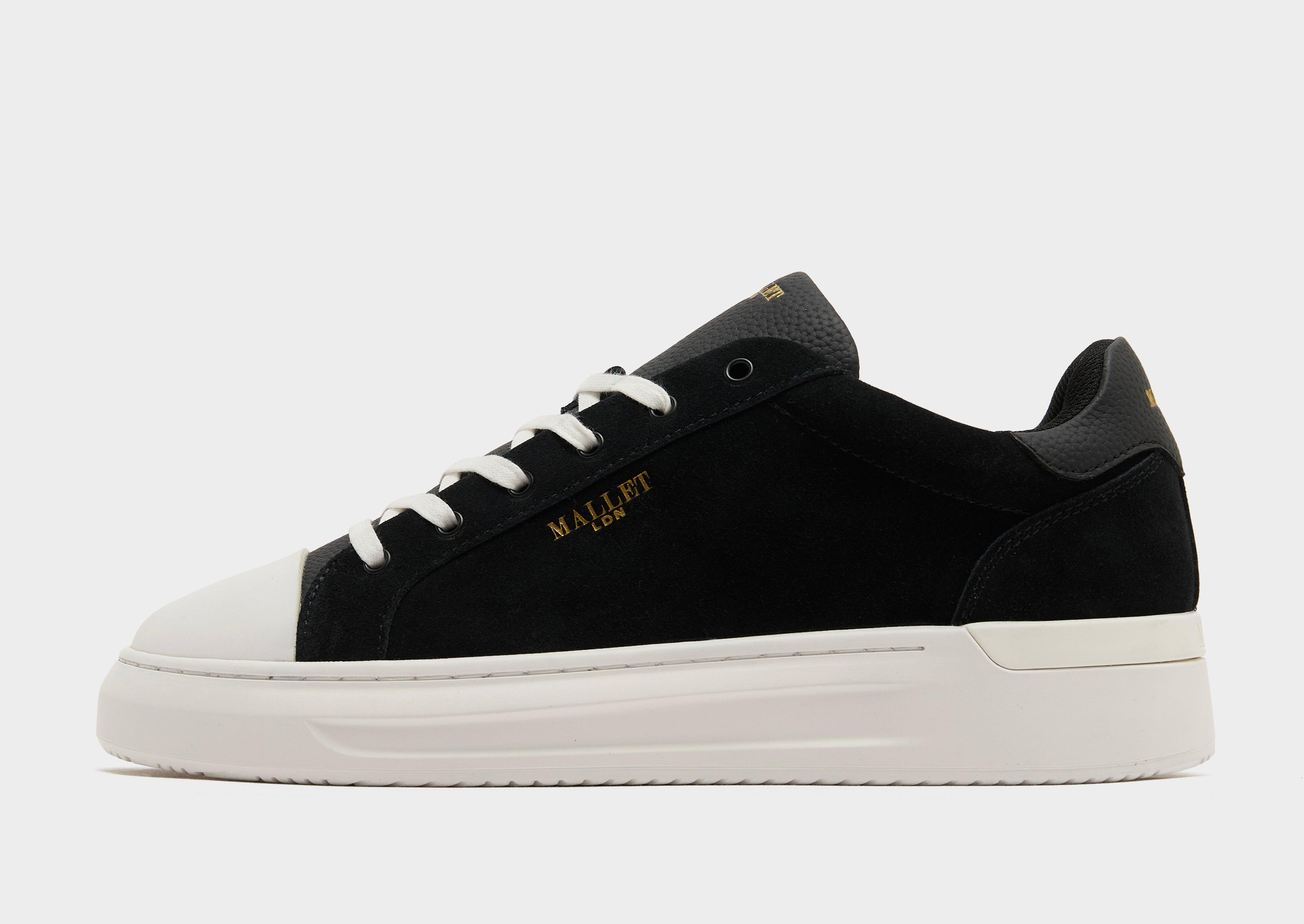 Refresh your rotation. These men's Mayfair Suede sneakers from Mallet LDN are cut from smooth and durable suede. They have a padded collar for support. A cushioned midsole for support. With a grippy rubber outsole for support. Landing in black, they're finished with signature branding.