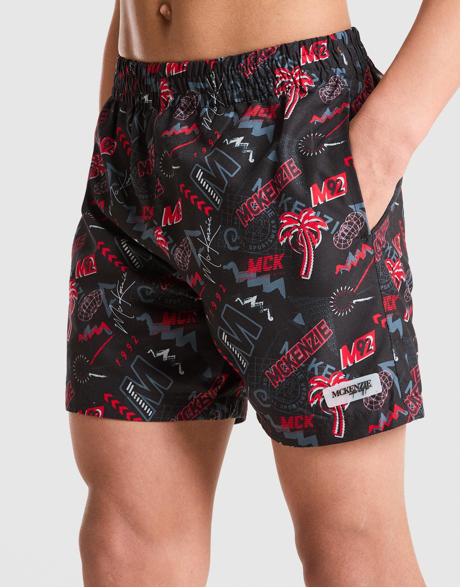 Summer vibes. JD-exclusive energy. These juniors' Memphis Swim Shorts from McKenzie are cut from smooth, quick-drying fabric. Theyve got an elasticated waist for support, with side pockets for your stuff. Finished with an all-over print and McKenzie branding. Machine washable.