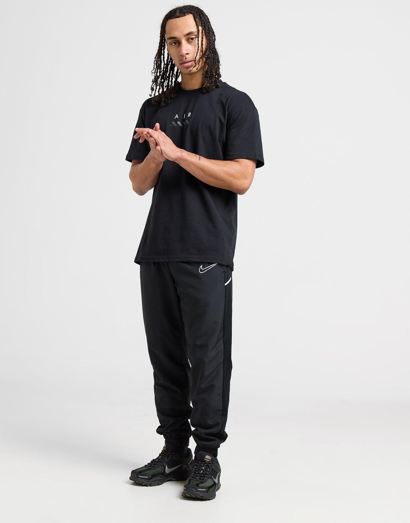Whether you're on the pitch or stepping out on the streets, these men's Academy Woven Track Pants from Nike have you covered. In Black, the lightweight yet durable woven fabric has breathable mesh panels and sweat-wicking Dri-FIT tech for cool comfort. They feature elasticated ankles and a drawcord-adjustable waistband for a secure fit. Finished with open hand side pockets and a White Swoosh logo to the left leg. Machine washable. | Our model is 6'0" and wears a size M.