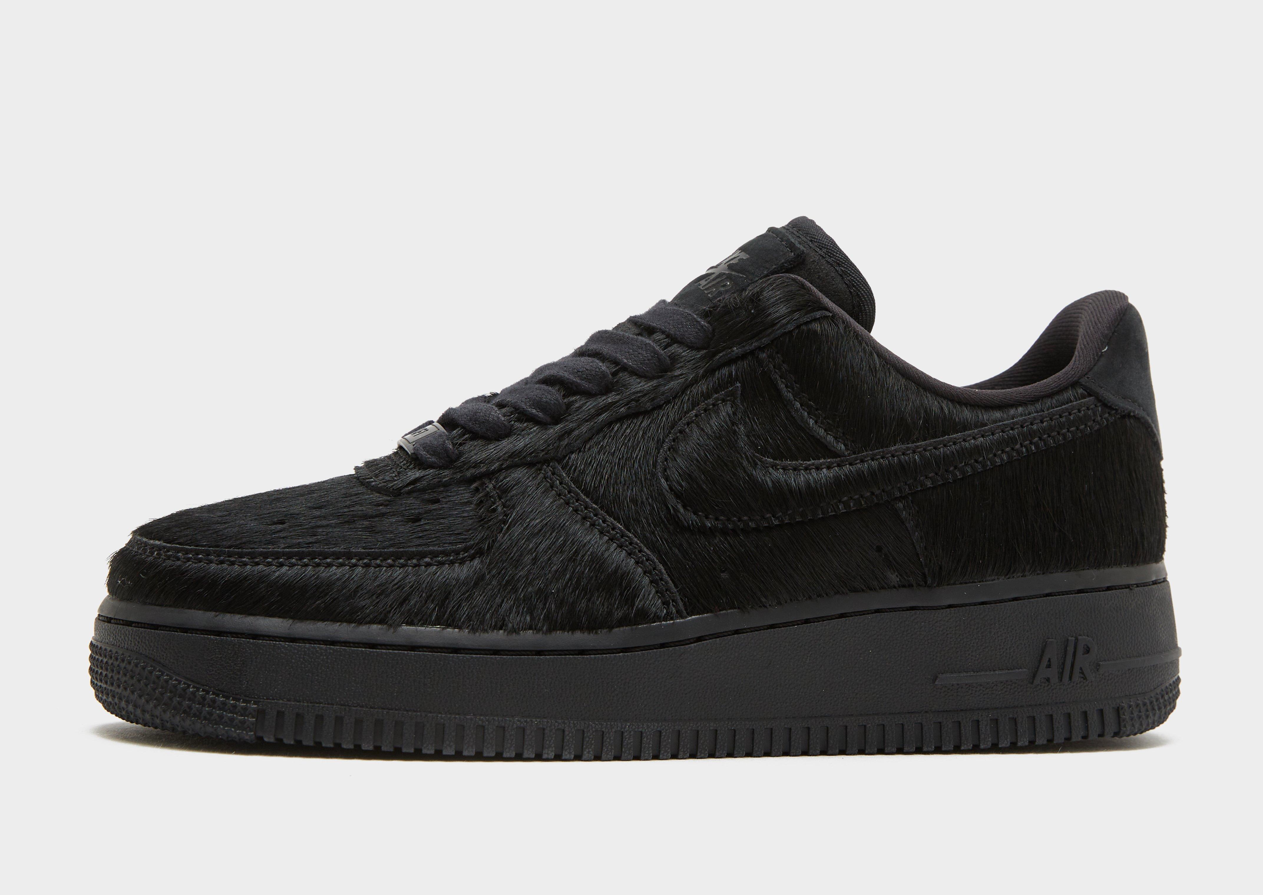 A staple triple Black pair gets refreshed with these women's Air Force 1 Low Pony Hair sneakers. Nike's iconic AF1 silhouette is decorated with a luxe pony hair finish for a premium look. With laces to lock you in and a plush padded collar, they sit above a thick foam midsole with hidden Nike Air cushioning for supreme comfort. With a grippy rubber outsole for traction, they're finished with classic Nike branding throughout.