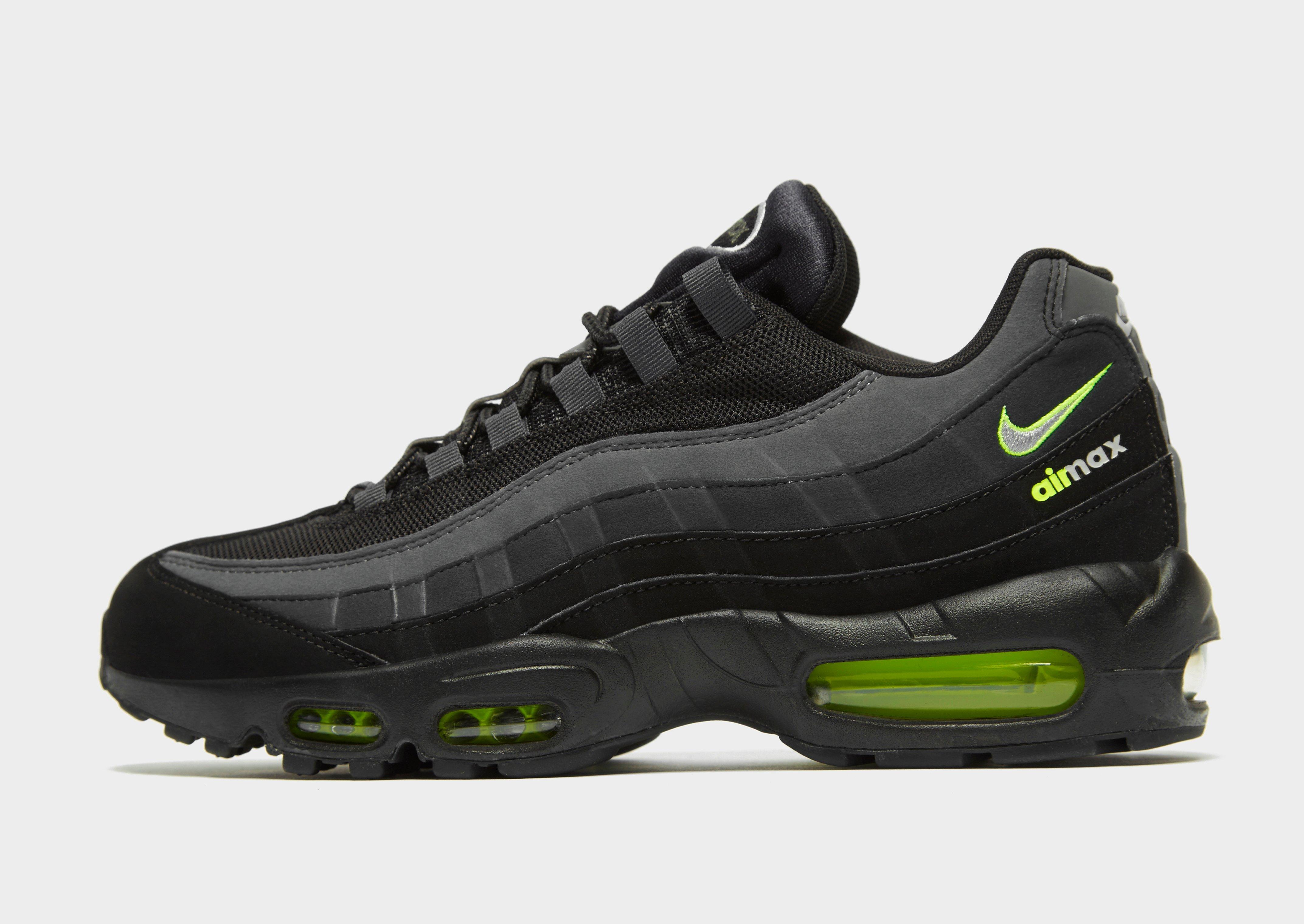 Sergio Lozano's '95 icon gets a JD-exclusive refresh with these men's Air Max 95 trainers from Nike. With the OG design lines that take cues from human anatomy, these legendary sneakers have a breathable mesh upper with synthetic suede overlays. They come in a Black and Smoke Grey colourway, and feature a secure lace up fastening and a lightweight foam midsole underfoot. Riding high on Nike's iconic, visible Air cushioning, with units in the heel and forefoot, these trainers take street-ready comfort up a level. They have a grippy waffle-inspired tread and are finished with bold Volt details, Air Max branding to the tongue and a mini Swoosh logo embroidered to the sidewalls.