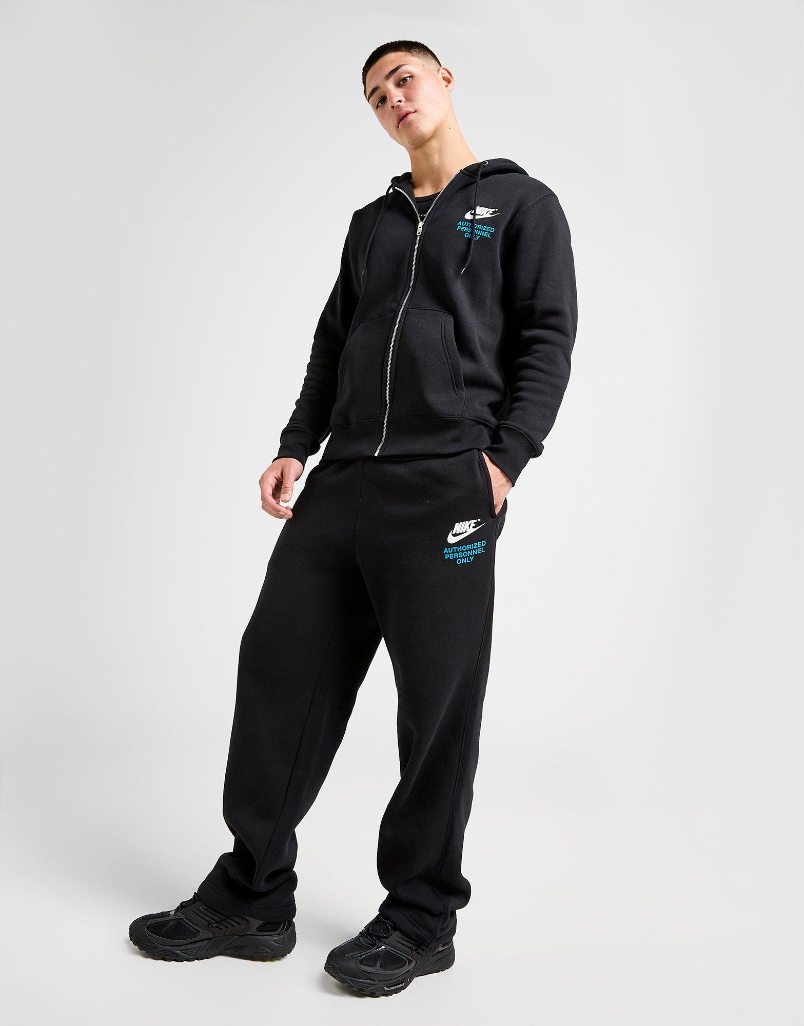 On off-duty days, these men's Authorised Joggers from Nike have you covered. In a Black colourway, these relaxed-fit joggers are made with a super-soft brushed fleece for lasting comfort. They have an elastic waistband with a drawcord for an easy feel, and chilled open hem cuffs. With side pockets to stash your essentials, they're signed off with Nike branding at the thigh. Machine washable. | Our model is 5'11.5" and wears a size M.