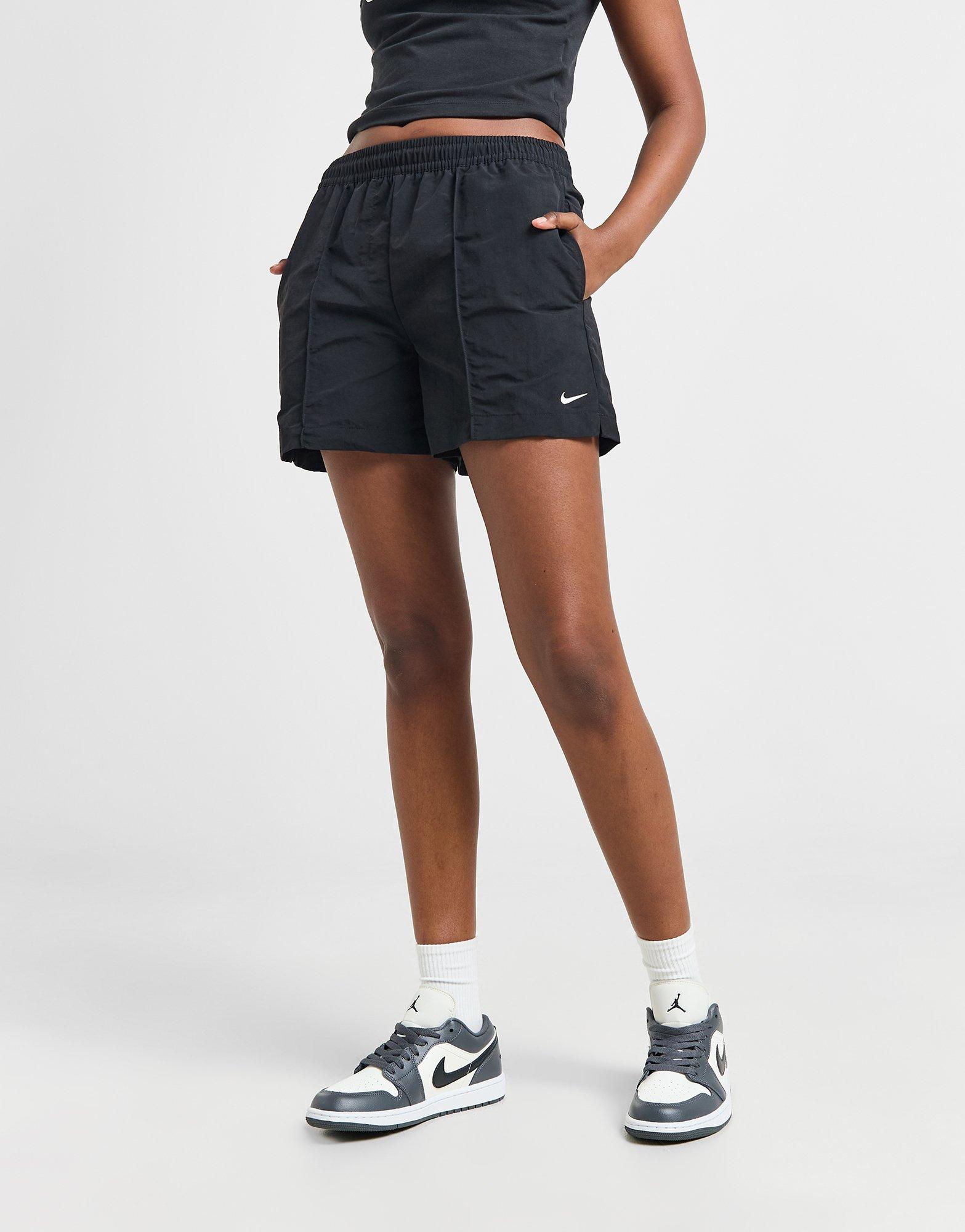 Bring the street-ready style to your new-season 'fits with these women's Essential Woven 5" Shorts from Nike. In a Black colourway, these standard-fit shorts are made with a smooth, lightweight woven nylon fabric for durable wear. With a matte, crinkly texture and a waterproof finish, they feature an elastic waistband for an easy fit, and sleek side pockets to stash your essentials. Finished with pin tuck detailing to the front and signature Swoosh branding. Machine washable. | Our model is 5'9" and wears a size small.