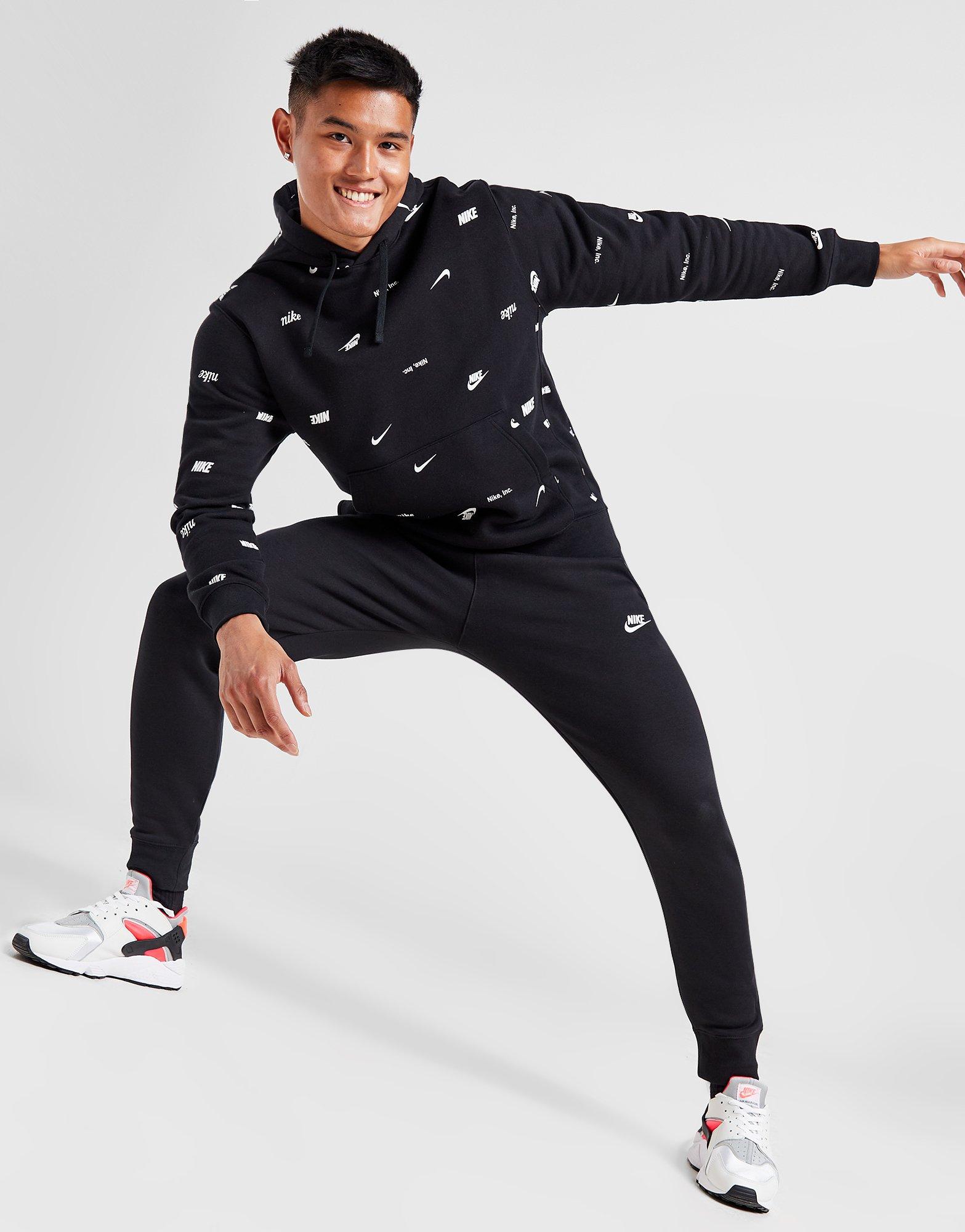 Get a staple Swoosh style with this men's Foundation Joggers from Nike. In a Black colourway, these joggers are made from a super-soft cotton poly blended fabric for lasting comfort. They feature an elastic waistband for a relaxed feel, cuffed ankles to hold the shape, and side pockets to keep your essentials stored. Signed off with the Futura logo to the thigh. Machine washable. | Our model is 6'0" and wears a size medium.