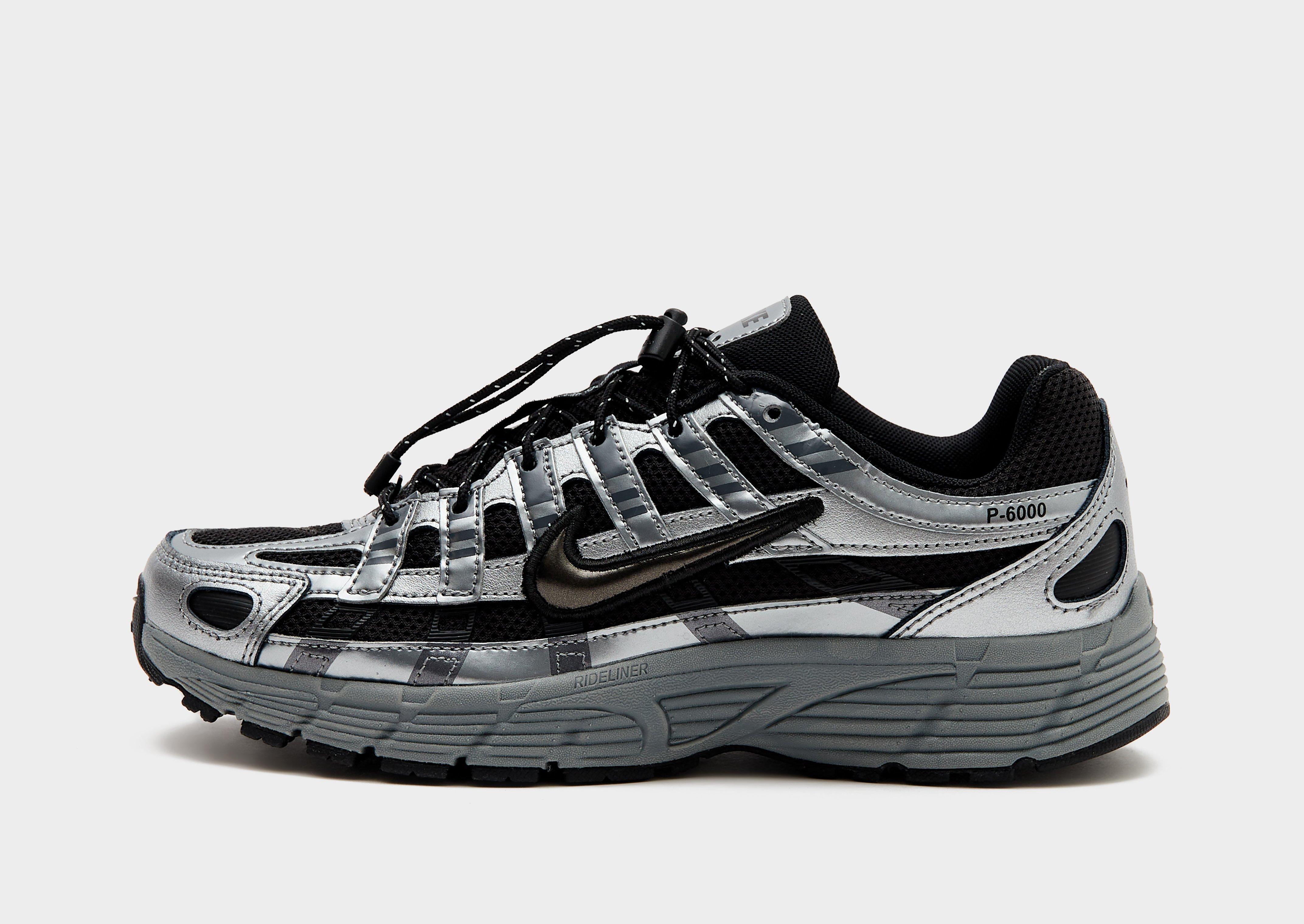 Inspired by classic Pegs, these juniors' P-6000 Utility trainers throw it back to the mid 2000s. In a black, Smoke Grey and Metallic Cool Grey combo, the layered upper is breathable yet durable thanks to a combo of mesh, leather and synthetic leather. A cushioned insole and foam midsole bring the comfort, while the rubber outsole grips every step. Reflective elements stand out at night, Swoosh logos add a classic touch and toggle-adjustable laces finish them with an outdoor edge.