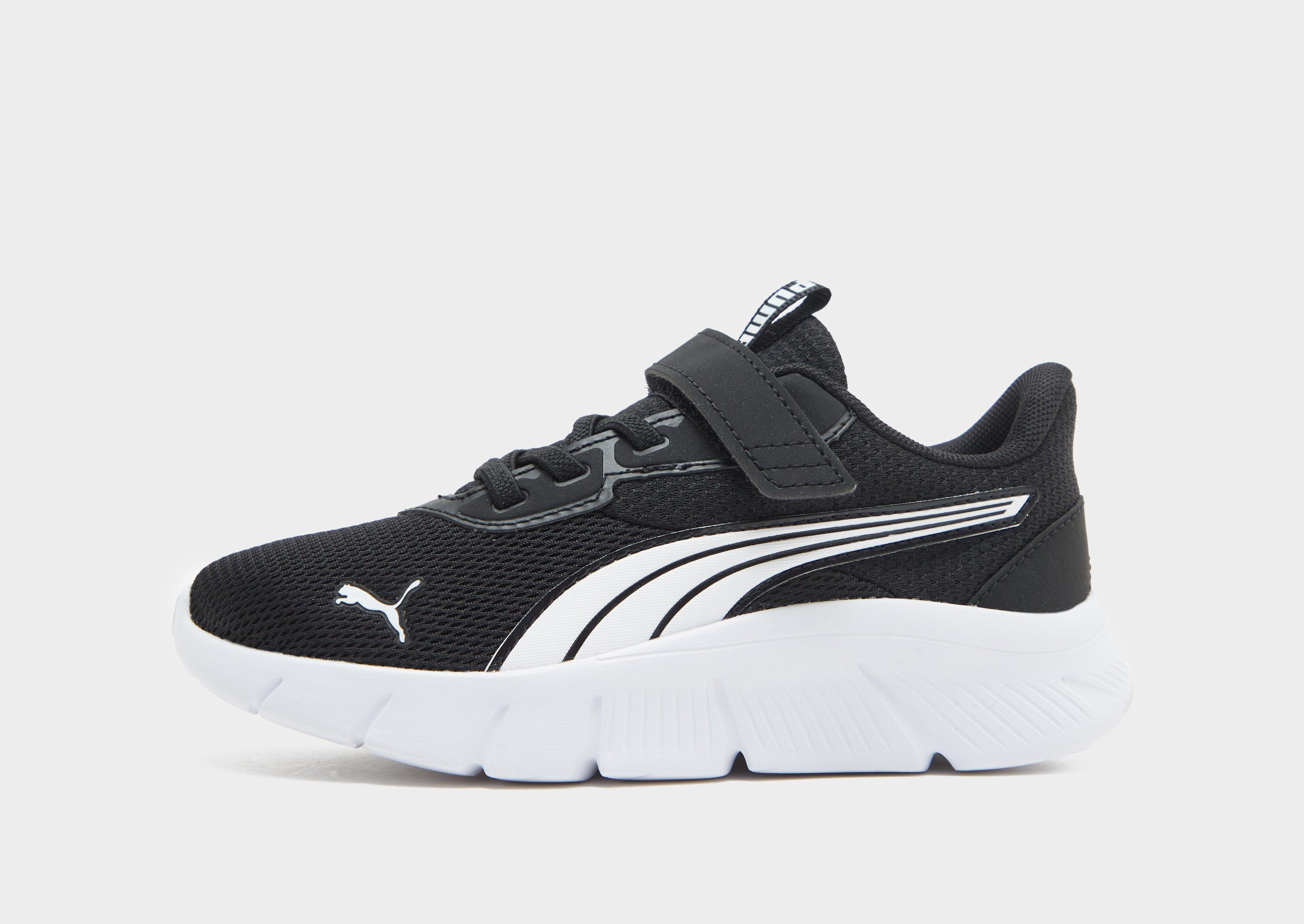 For the little one's that love to play, these children's FlexFocus trainers from PUMA keep up with their every move. In a Black and White colourway, they have a breathable mesh upper, elastic laces and a hook-and-loop strap. The mesh lining adds airflow, while the soft foam midsole and flexible EVA outsole cushions and grips. Finished off with the PUMA Cat logo and the signature Formstrip.