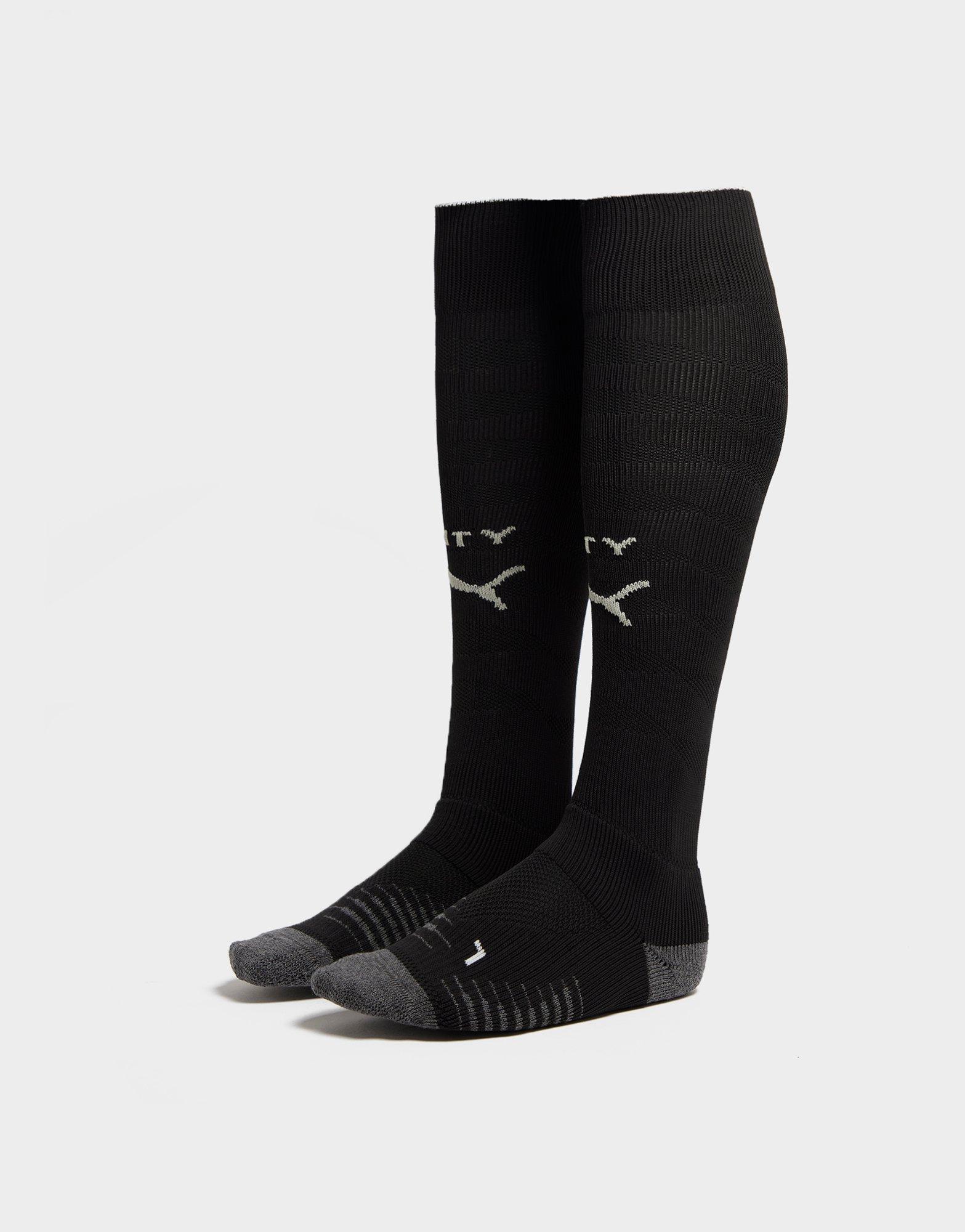 Completing the kit? We got you. Cop these men's Manchester City FC 2025/26 Away Socks from PUMA. Cut from light and stretchy fabric for lasting wear, they're equipped with dryCELL tech to remove sweat. Mesh panels offer airflow. Padding underfoot brings cushioning and support. Landing in smooth black, they're finished with the City crest and signature branding. Machine washable.