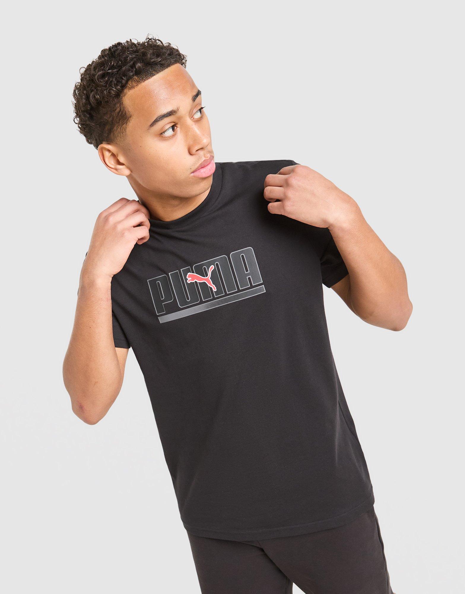 Keep it casual with this men's Sportswear T-Shirt from PUMA. Made from soft cotton fabric in black, this JD-exclusive tee features short sleeves and a ribbed crew neckline. It's cut for a standard-fit and finished with signature PUMA branding to the chest. Machine washable | Our model is 5'11" and wears a size M.