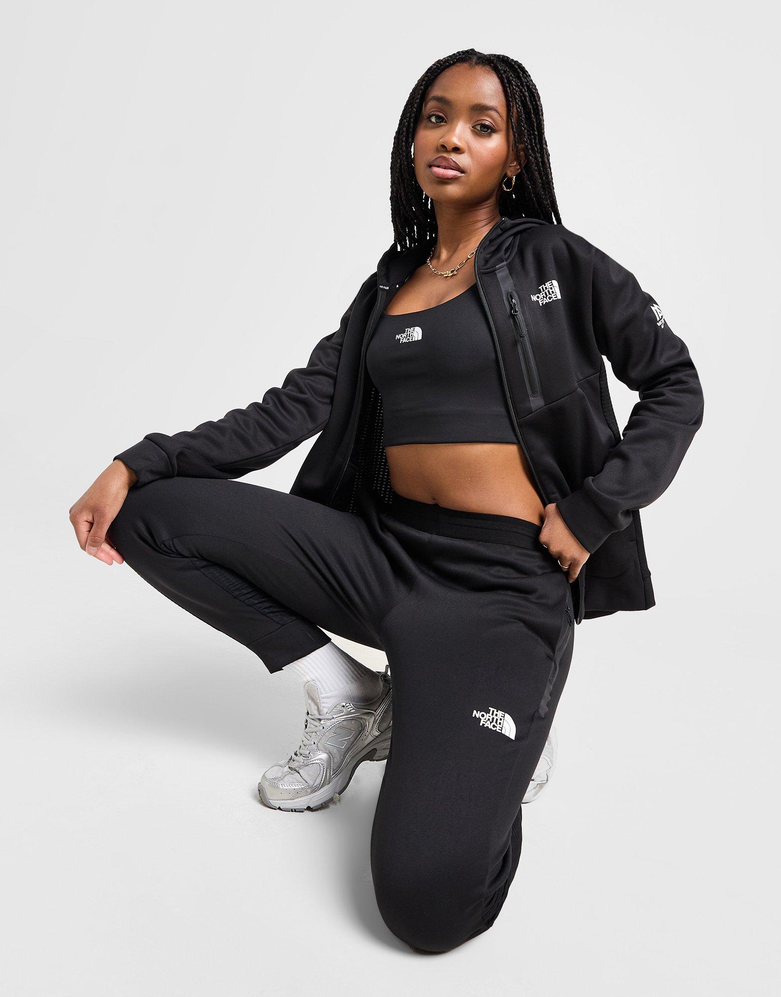 Comfort goes up a level with these women's Mountain Athletics Track Pants from The North Face. In a Black colourway, these tapered track pants are made from durable poly fabric. They feature an elasticated waistband and cuffed ankles that hold the shape. With side pockets for your essentials, these track pants are finished up with signature The North Face branding to the thigh. Machine washable. | Our model is 5'7" and wears a size S