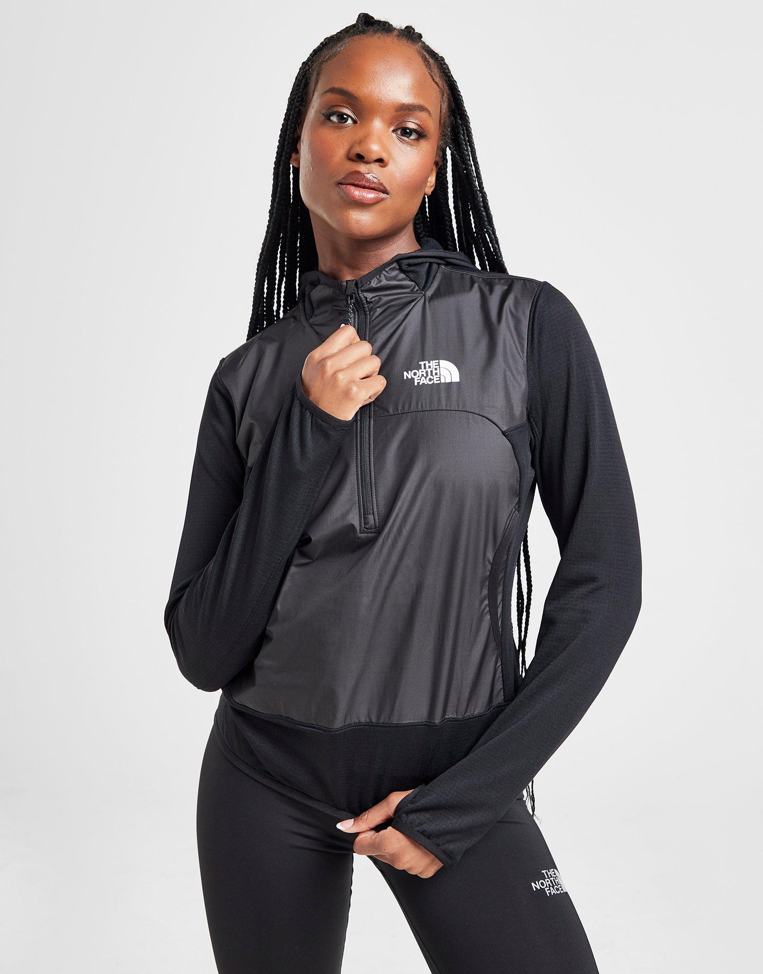 The temp' dippin' doesn't mean you can't train with this women's Warm 1/4 Zip Hoodie by The North Face. In a Black colourway, this top is made with a soft and snug poly fabric that has added stretch for comfy wear. It features a 1/4 zip fastening so you can control your airflow, a fixed hood for protection from downpours, and an elastic hem to hold the shape. With thumbholes that keep the long sleeves in place, it's finished with a TNF Dome logo to the chest and reverse shoulder. Machine washable. | Our model is 5'7" and wears a size small.