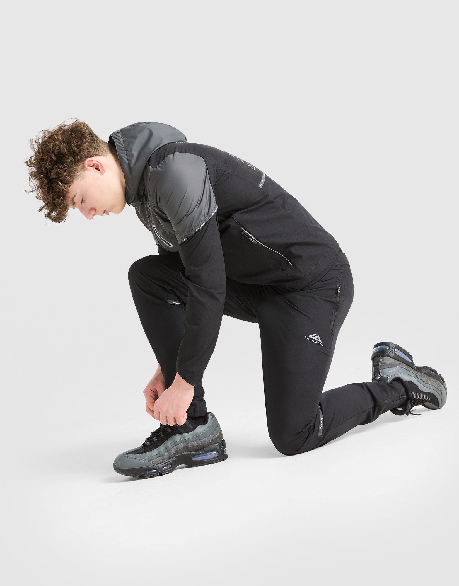 Get exploring in these juniors' Vertigo Tape Track Pants from Trailberg. Landing in black and Volcano Grey, these tapered yet flexible track pants are made from four-way stretc fabric for durable comfort. Zip ankles and a drawcord tie on the waistband help adjust the fit to how you like. Finished up with zip pockets and reflective Trailberg branding. Machine washable.