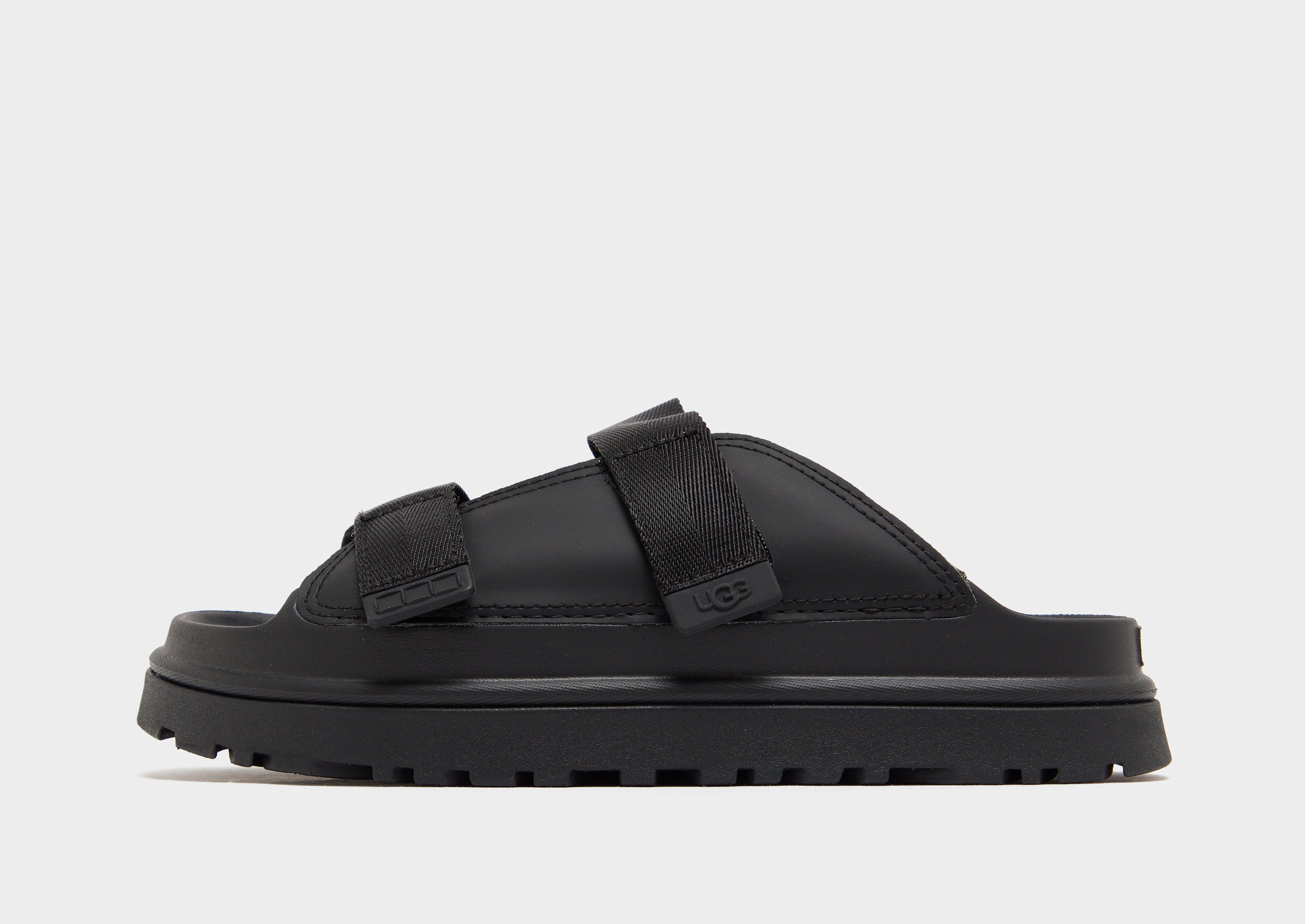 Step into comfort with these juniors GoldenGlow Slides from UGG. Up top, theyve got three adjustable hook-and-loop straps so you can adjust the fit. They have a sugarcane EVA midsole and outsole for extra comfort, with UGG branding to finish things up.