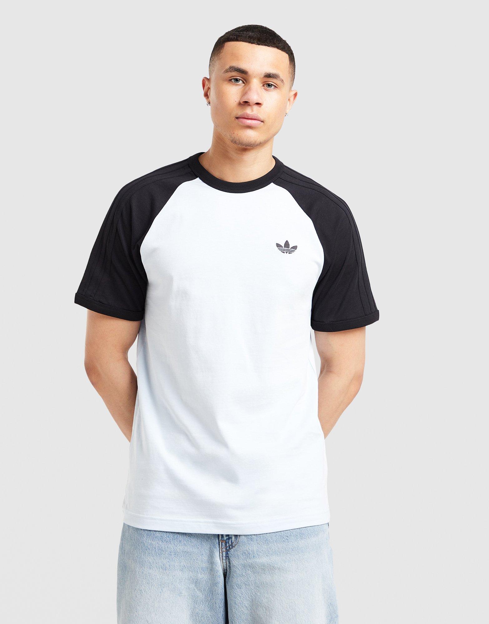 Need a new one for your tee collection? This men's Adicolor Classics 3-Stripes T-Shirt from adidas Originals is cut from soft, lightweight cotton for everyday comfort. It's got a ribbed crew neckline and short raglan sleeves, with a black and white colour combo and signature adidas branding. Machine washable. | Our model is 6'0" with a 36" chest and wears a size M. | KE2423