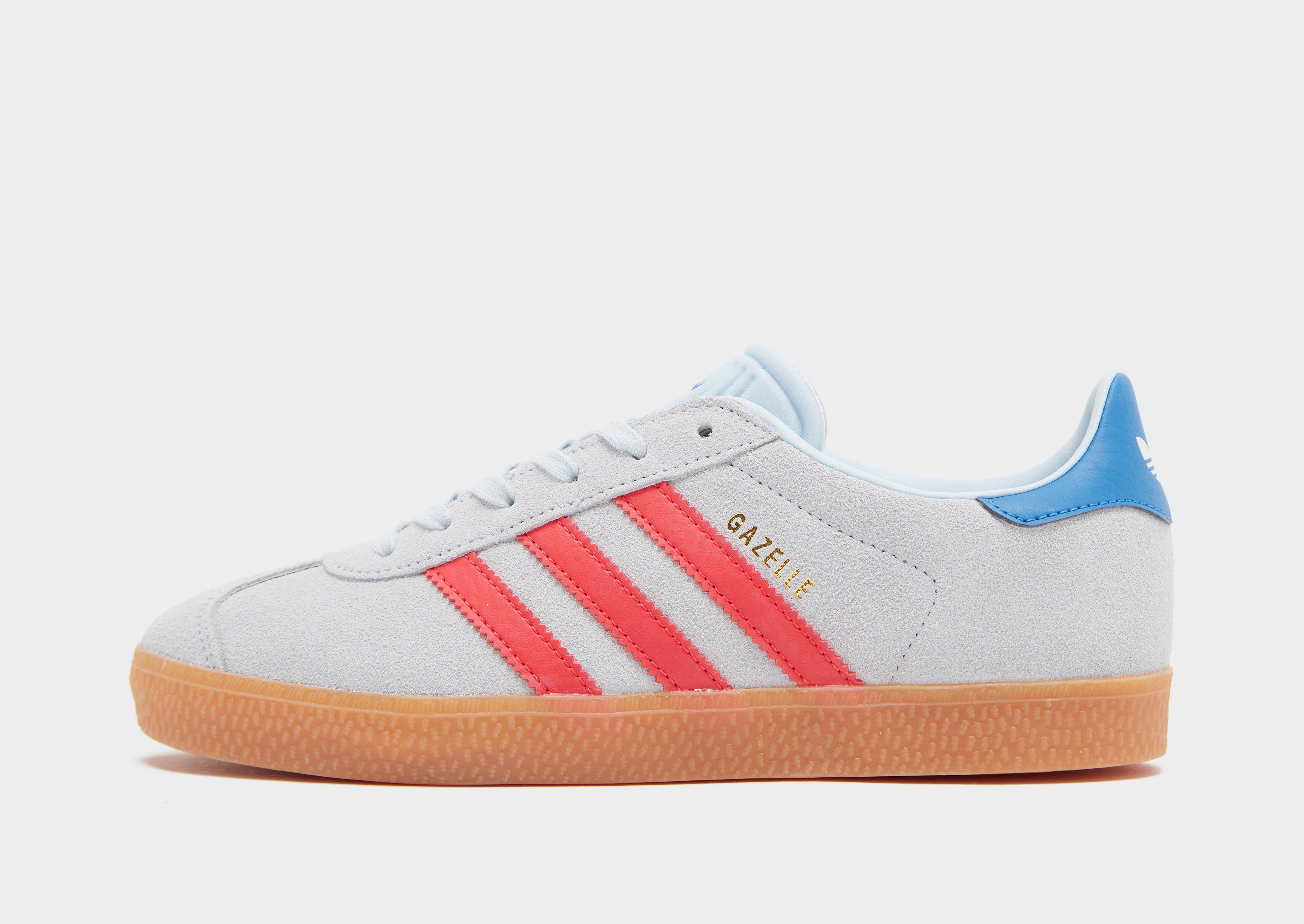 Iconic. Always. These juniors' Gazelle trainers land in a Clear Sky colour with red accents. Crafted with soft suede through the upper and a signature T-toe cap, they've got a clean, streamlined design. They sit on a lightweight foam midsole with classic laces to lock you in. And a rubber sole for daily grip. Finished up with iconic adidas Originals branding. | IH6469