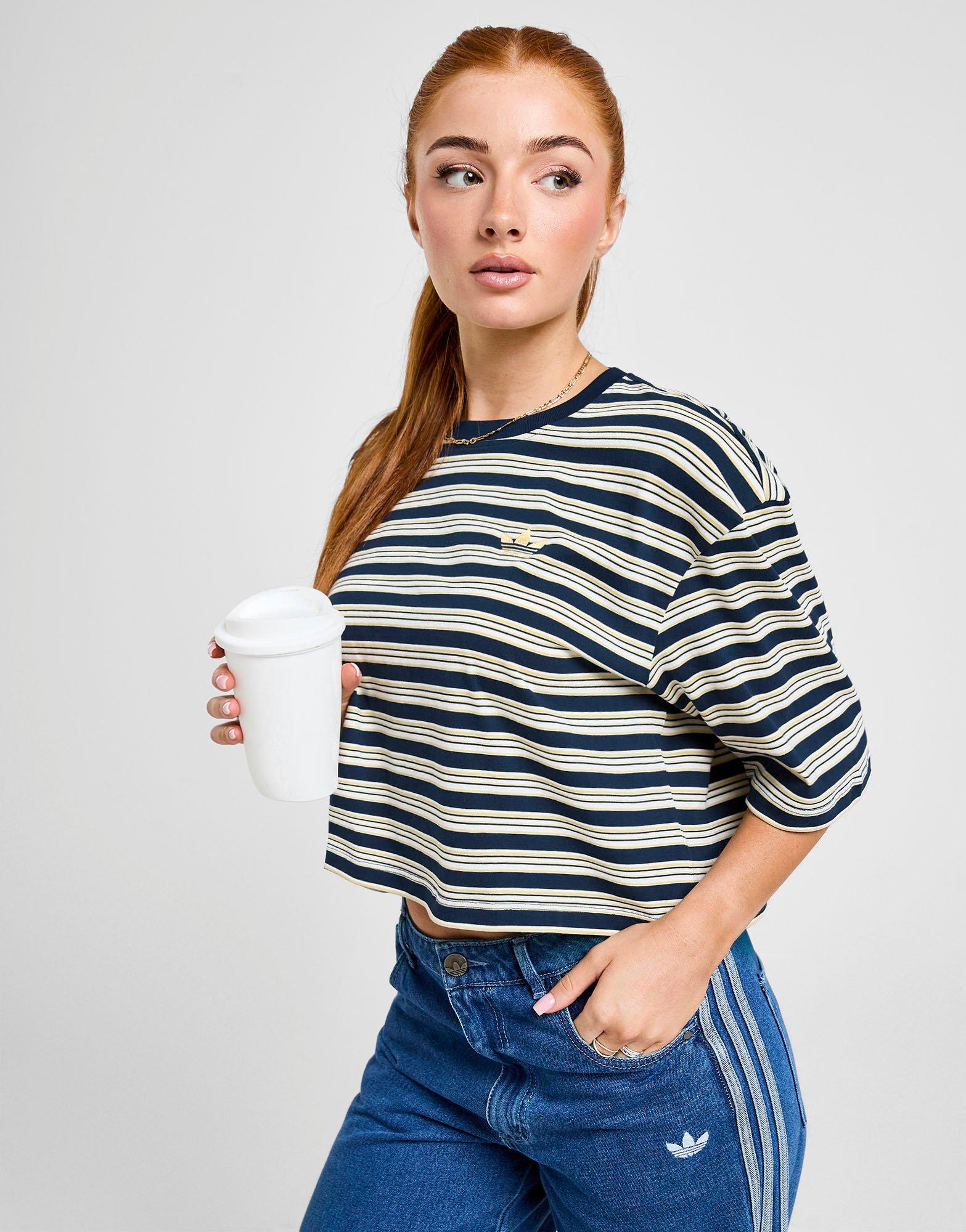 adidas Originals' bringing the summer vibes with this women's Stripe Crop T-Shirt. Exclusive to JD, it's cut from soft cotton. It has a ribbed crew neckline, short sleeves and a cropped hem. Signed off with horizontal stripes and an embroidered Trefoil logo to the chest. Machine washable. | Our model wears a size S. | KC9852