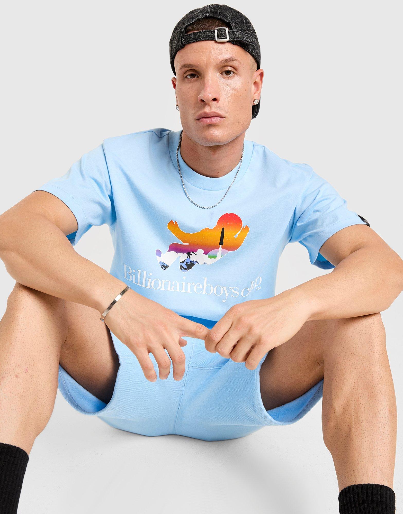 Go premium in this men's Billionaire Boys Club Astronaut T-Shirt. In Sky, this cotton tee feels structured but soft. A thick ribbed collar and short sleeves feels elevated. Finished with a contrast Billionaire Boys Club Astronaut graphic to the front. Machine washable. | Our model is 6'0" with a 39" chest and wears a size M.