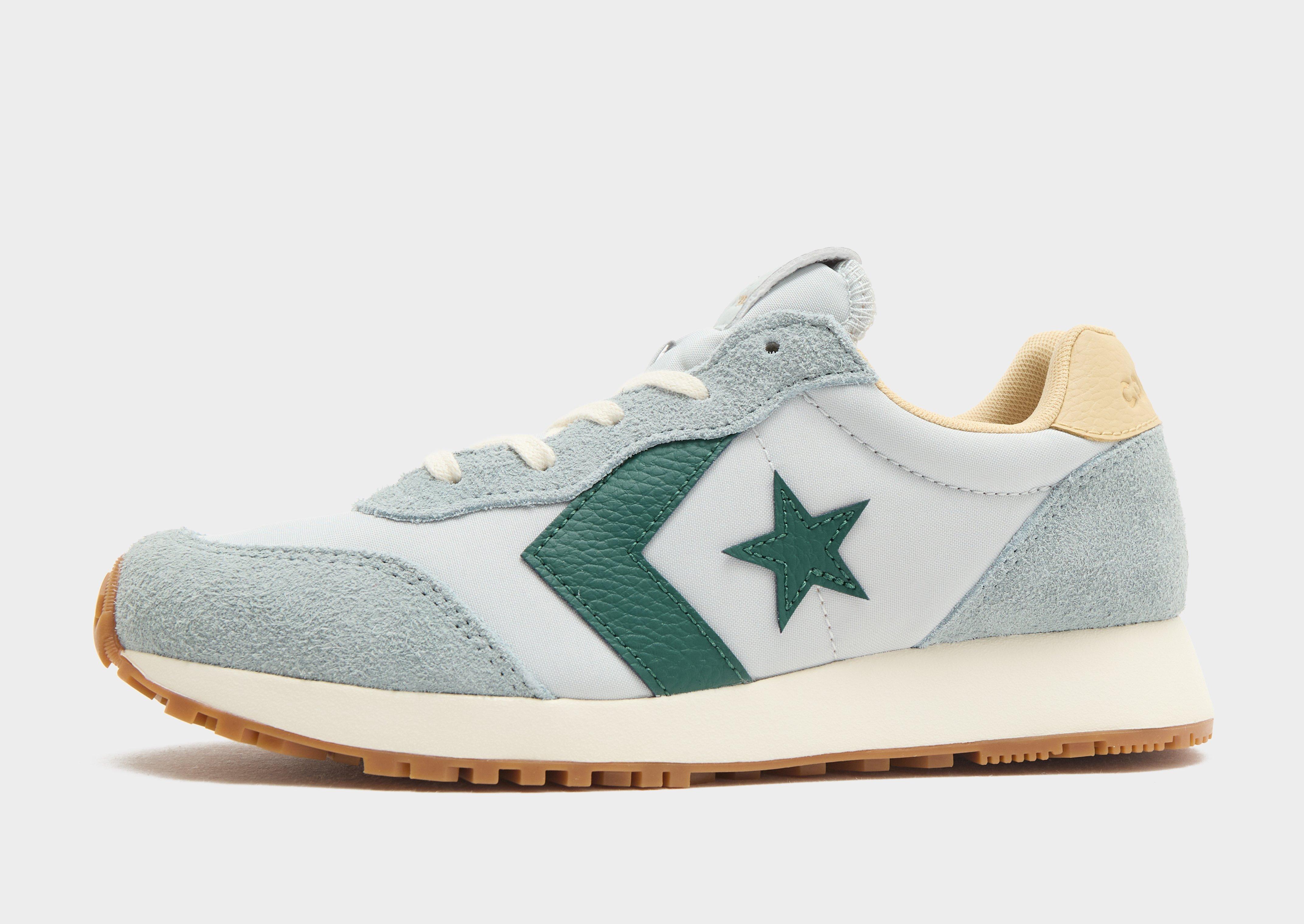 Rep a retro look with these women's Omega Trainers from Converse. In a crisp Mountain Teal colour, these chunky runners have a lightweight woven upper with premium suede layers. Lock in with a lace fastening. The EVA foam midsole and Converse Comfort sockliner delivers plush cushioning. With a Chevron-patterned gum rubber sole for traction, they're finished with signature Converse branding.