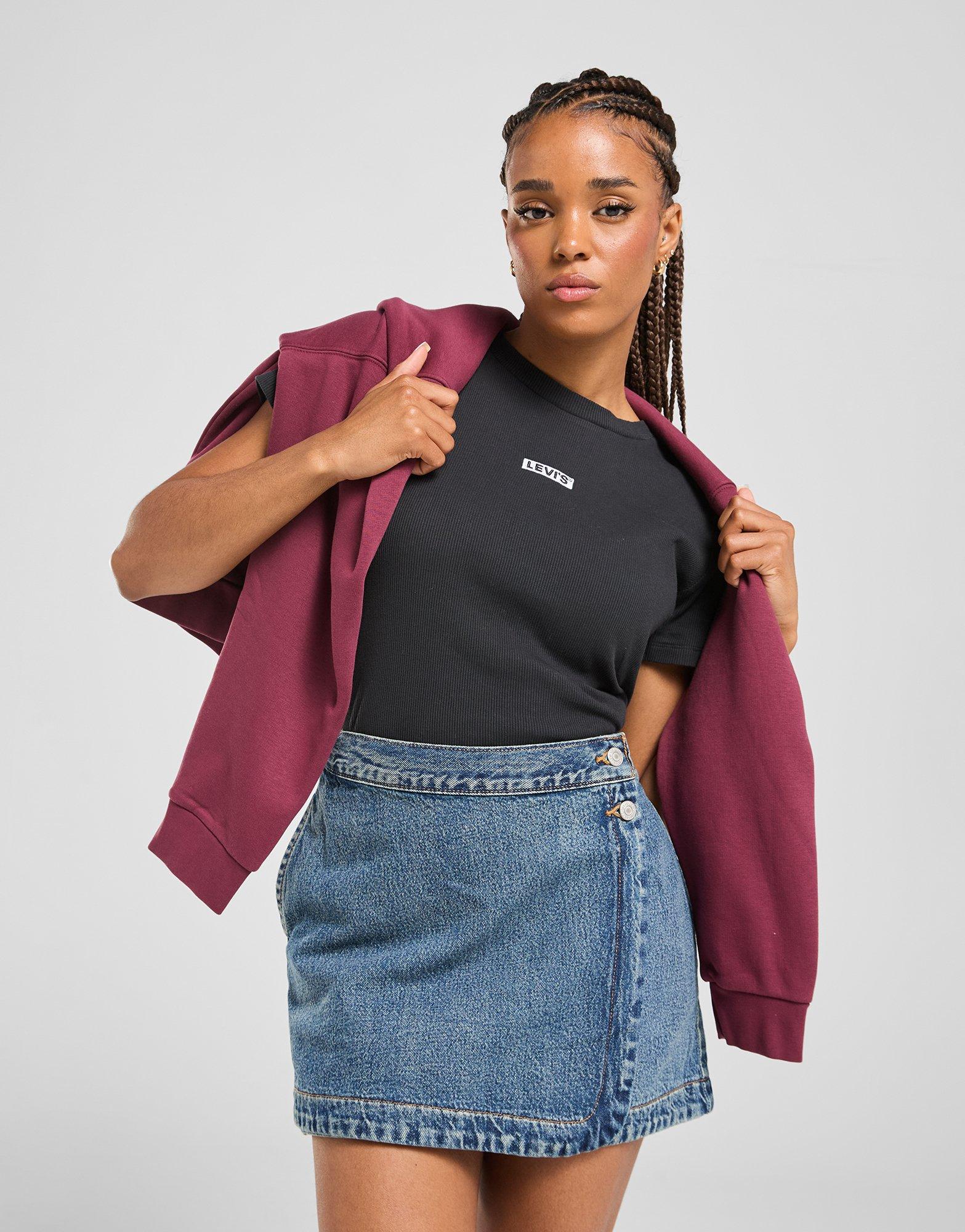 Bring a fresh look to your 'fits with this women's Denim Wrap Skirt from Levi's. In a Blue colourway with a mid-wash finish, this mini skirt is cut from soft, durable partly-recycled cotton denim for lasting comfort. With a slim-fit design, it features a wrap design with button closures, and is finished with a signature Levi's logo patch to the back. Machine washable. | Our model is 5'7" and wears a size 26R.