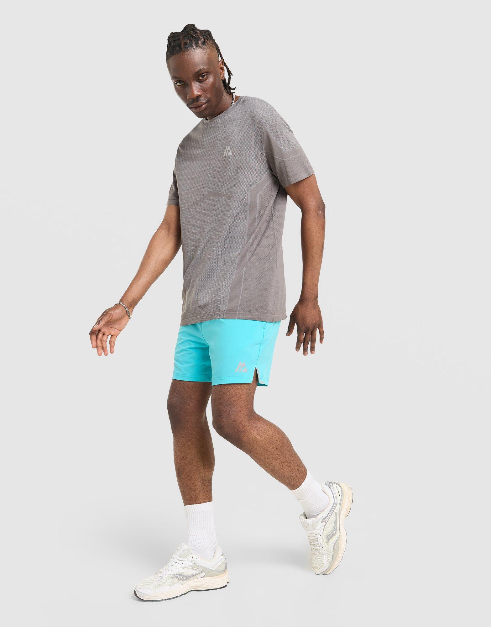 Training sessions to city days. These men's Fly Shorts from Montirex always work. In Aqua, these standard-fit shorts are cut from smooth, stretch-woven fabric that's light and breezy. They've got an elastic waist for a secure fit, and pockets to stash your essentials. With split side seams for extra give as you move, they're finished up with signature Montirex logos. Machine washable. | Our model is 6'0" and wears a size M.