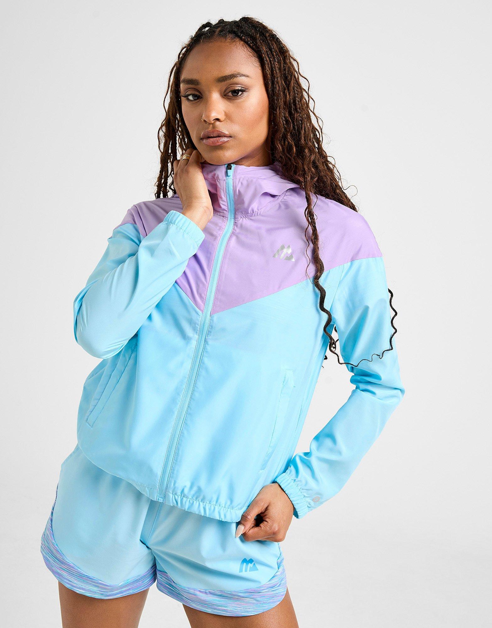 Layer up for your workout with this women's Move Colour Block Jacket from Montirex. In a Blue and Lilac colourway, this JD-exclusive jacket is cut from light and water-resistant polyester to keep you dry. It features a full-zip fastening and hood for custom coverage, with ribbed trims to hold the shape and zip-up side pockets for safe storage. Finished up with classic Montirex branding to the chest. Machine washable | Our model is 5'7" and wears a size S.