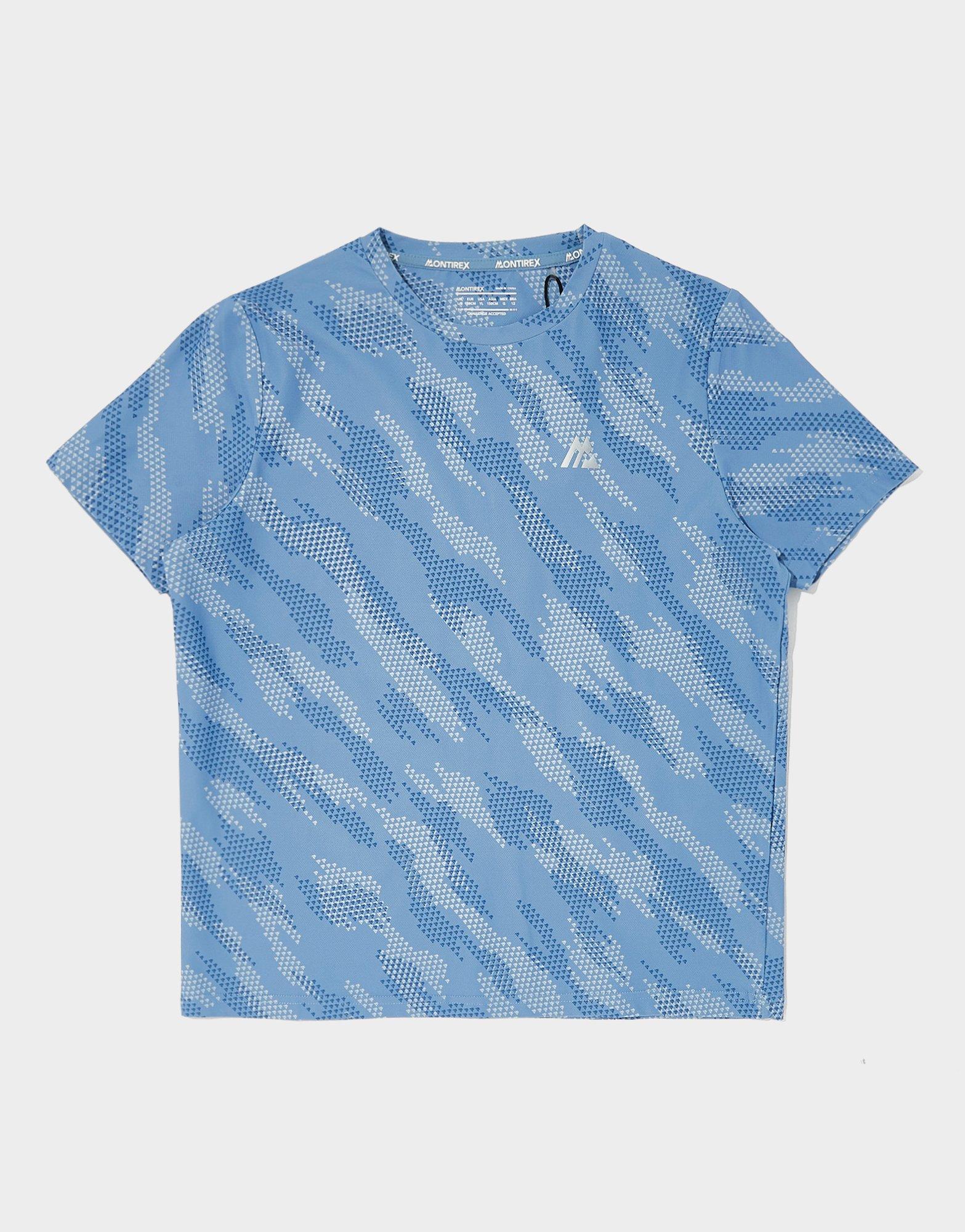 Stand out from peak to street in this juniors' Thera All Over Print T-Shirt from Montirex. In bold print digital camo print, this tee is made from stretchy and breathable fabric for cool comfort. Cut with a crew neckline, it's finished off with a reflective Montirex logo on the chest. Machine washable.