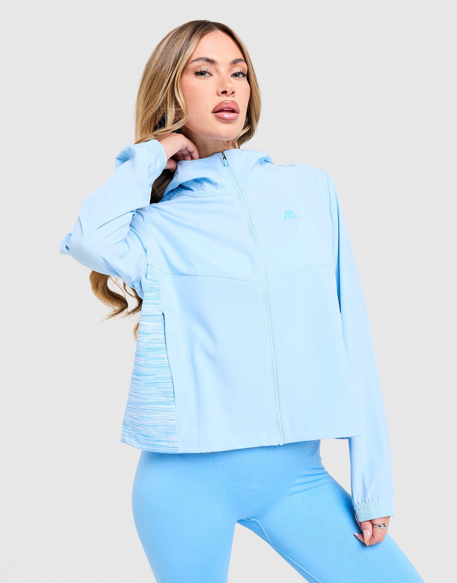 Keep the weather off as you train. This women's Trail Windbreaker Jacket from Montirex is stretchy, durable and wind-resistant. JD-exclusive, it has bungee cords at the hood and hem to adjust the fit. Elastic cuffs hold the shape. Zip-up pockets hold your essentials. Landing in light blue, it's finished with the logo to the chest. Machine washable | Our model is 5'7" and wears a size S.