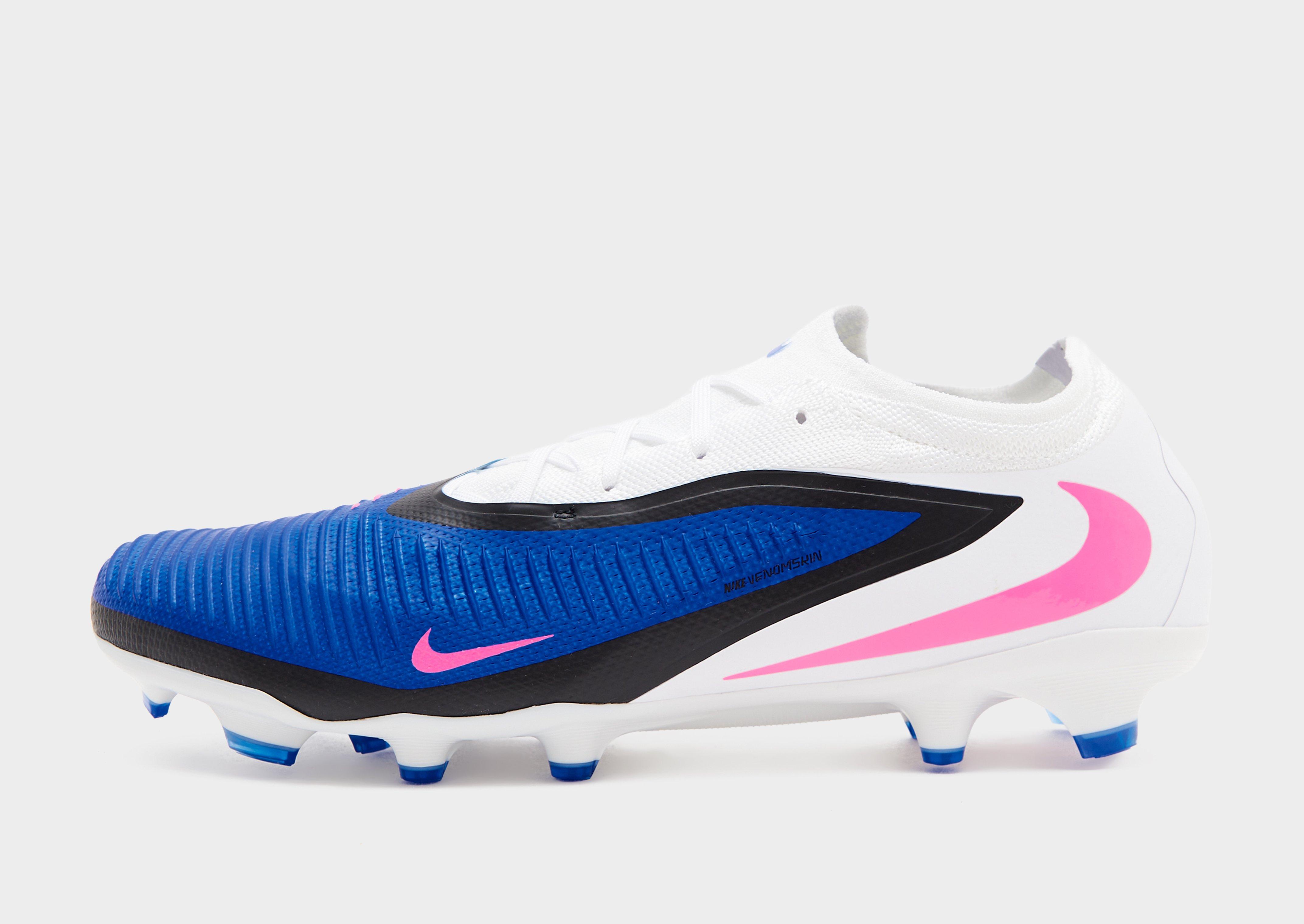 Take the game to your opponent. These men's Phantom 6 Low Pro FG football boots from Nike combine grippy VNMSkin with Flyknit for clean, accurate strikes. The new frame offers a natural fit. The cushioned sockliner brings a supported feel. Underfoot, Cyclone 360 traction helps you pivot and accelerate at speed. The land in white, Racer Blue and Pink Blast, with classic Swoosh branding.