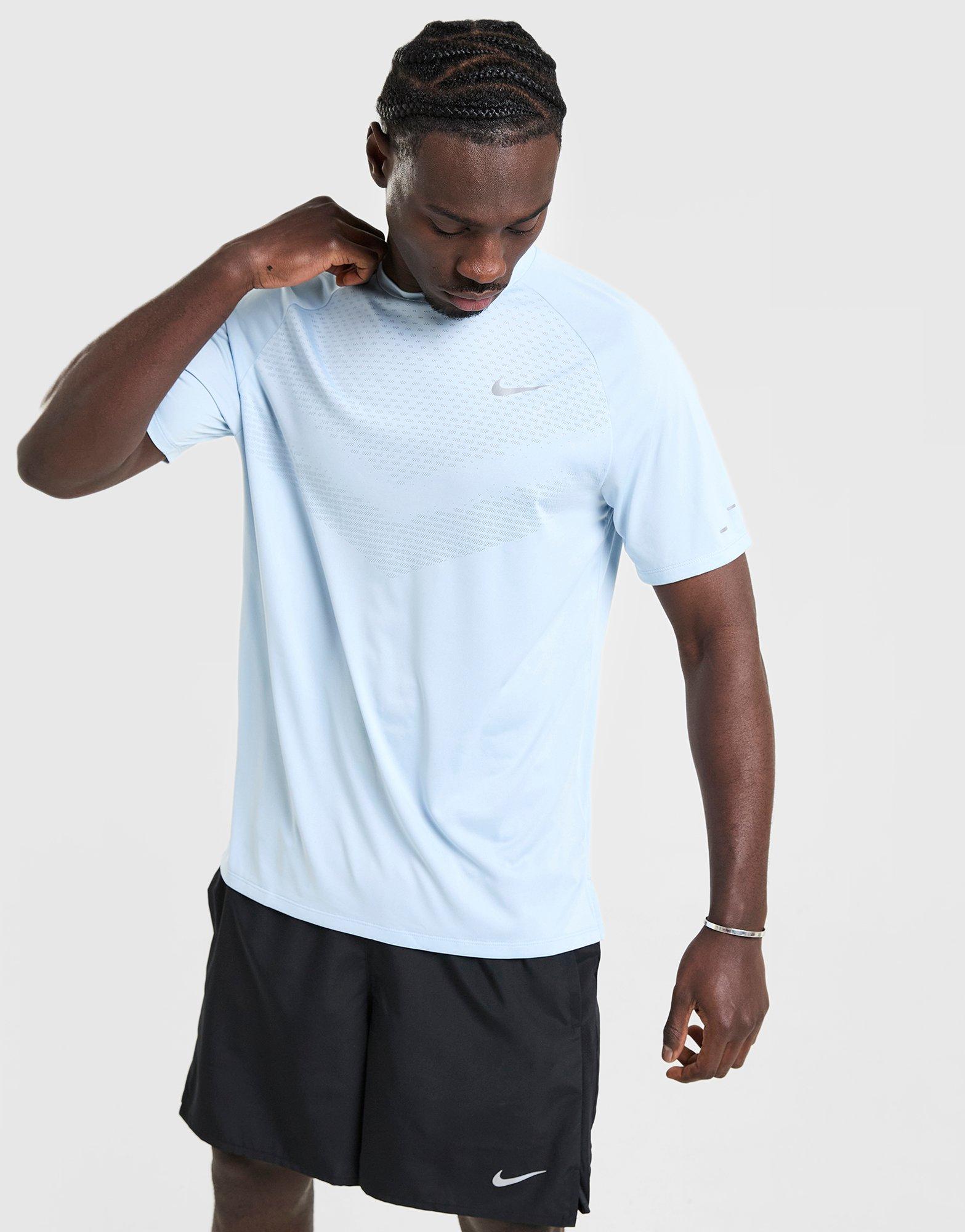 Nike's unlocked new levels of training comfort with this men's Stride T-Shirt. Ultra-light and breathable, the fabric is packed with Nike Dri-FIT ADV tech to remove sweat and keep you dry and fresh. It lands in Light Armory Blue, featuring a tonal chevron print and reflective detailing, including the iconic Swoosh. Going the distance? The raglan sleeves reduce chafing. Machine washable. | Our model is 6'1" with a 36" chest and wears a size M.