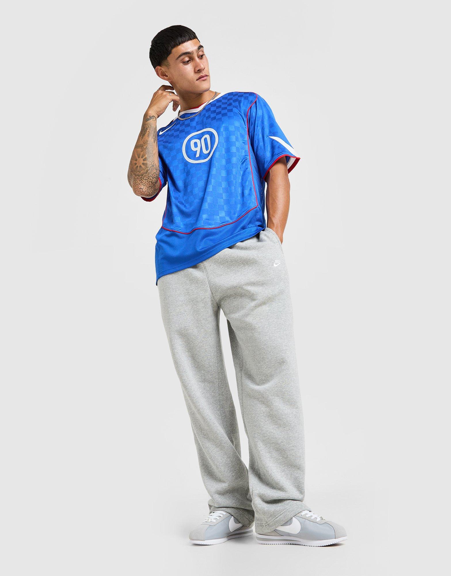 Throw it back to the early 2000s and hit the pitch in iconic style with this men's Dri-FIT Total 90 Energy T-Shirt from Nike. In a Game Royal checkered colourway with White panels and Sport Red piping, this standard-fit shirt is cut from light and breathable polyester for a cool and comfy wear. It features short sleeves with a ribbed crew neckline and is equipped with Dri-FIT tech to remove sweat. It has mesh ventilation panels for extra airflow and is finished up with the Nike Swoosh and legendary T90 logo to the chest. Machine washable | Our model is 6'0" with a 40" chest and wears a size M.