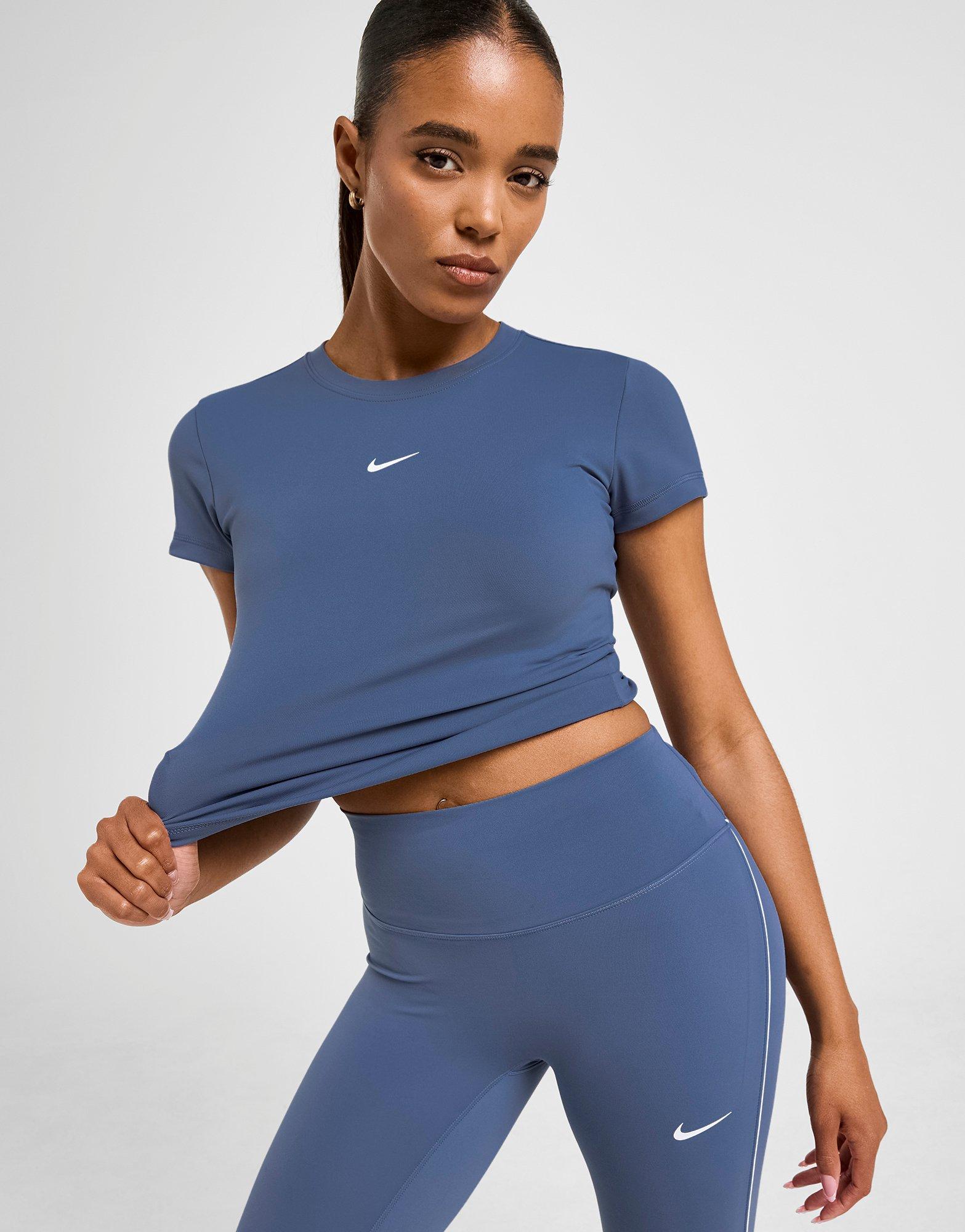 Exclusive to JD. Get moving in this women's Training GLS T-Shirt from Nike. In a Slate colourway, this slim-fit tee is cut from light and stretchy fabric for a flexible feel. It features short sleeves with a ribbed crew neckline and is equipped with Dri-FIT tech to wick away sweat. Finished up with a Swoosh to the chest. Machine washable | Our model is 5'7" and wears a size S.
