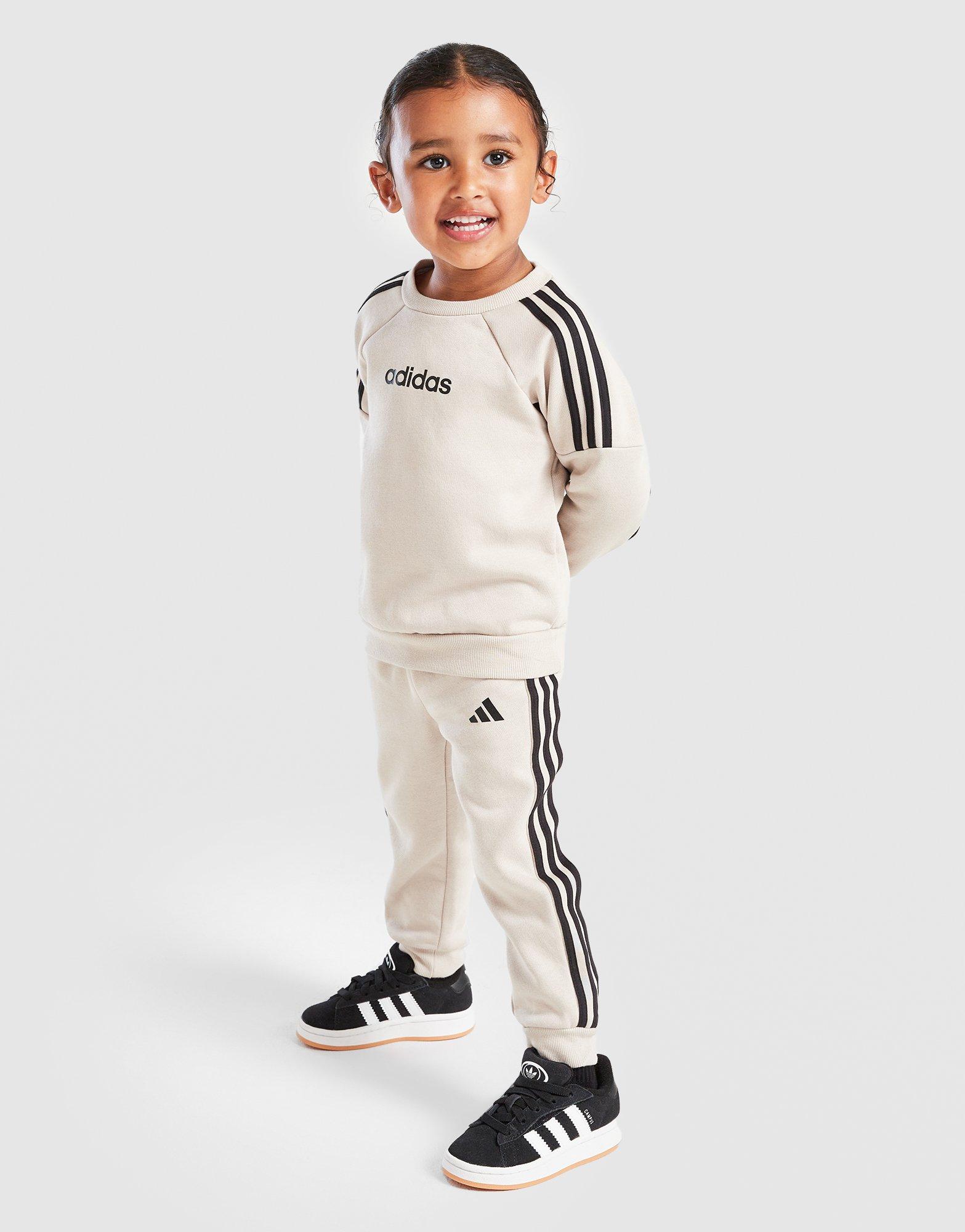 Level up their style with this infants' Colour Block Linear Crew Tracksuit from adidas. In a Wonder Beige colourway, this JD-exclusive tracksuit is cut from smooth fleece fabric for everyday comfort. The top features a crew neckline with long sleeves, while the matching pants have an elasticated waistband for a relaxed wear. With ribbed trims to hold the shape, it's finished up with the Performance logo, linear branding and signature 3-Stripes. Machine washable | JZ3297