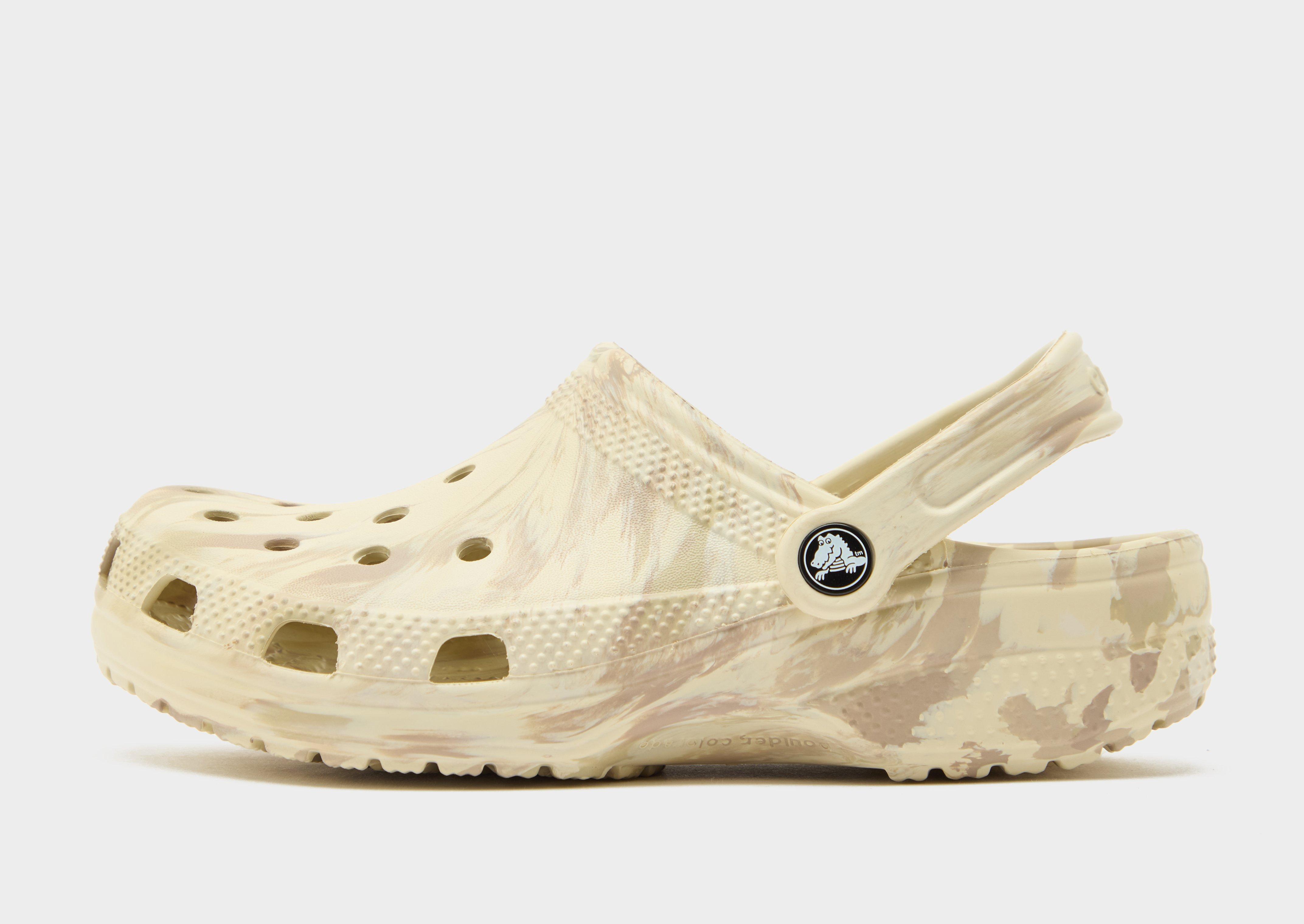 Bring the chill vibes with these juniors' Classic Clogs Marbled from Crocs. In a Stucco colourway, these JD-exclusive clogs are cut from smooth and durable Croslite foam for a lasting wear. They feature a pivoting heel strap for an adjustable fit, with breathable portholes for ventilation and a grippy sole for firm traction. Finished up with classic Crocs branding. Please note: Crocs fit wide. If you have narrow feet, we recommend that you size down. Crocs come with the US size embossed to the sole.