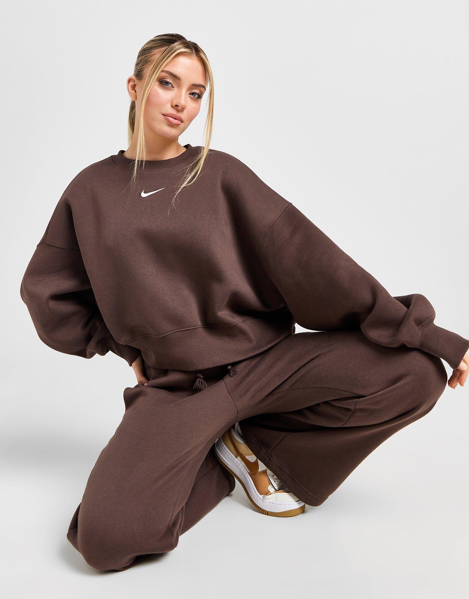 Elevate your off-duty essentials with this women's Phoenix Oversized Crop Crew Sweatshirt from Nike. In a Baroque Brown colourway, this JD-exclusive sweatshirt is made with Nike's ultra-soft Phoenix fleece fabric. It's brushed inside for a cosy feel, and fits oversized for a laidback vibe. It features a thick ribbed crew neckline and roomy sleeves with dropped shoulders, along with sleek, elongated ribbed cuffs to secure the fit. Finished with the legendary Swoosh logo embroidered to the chest. Machine washable. | Our model is 5'6" and wears a size small.