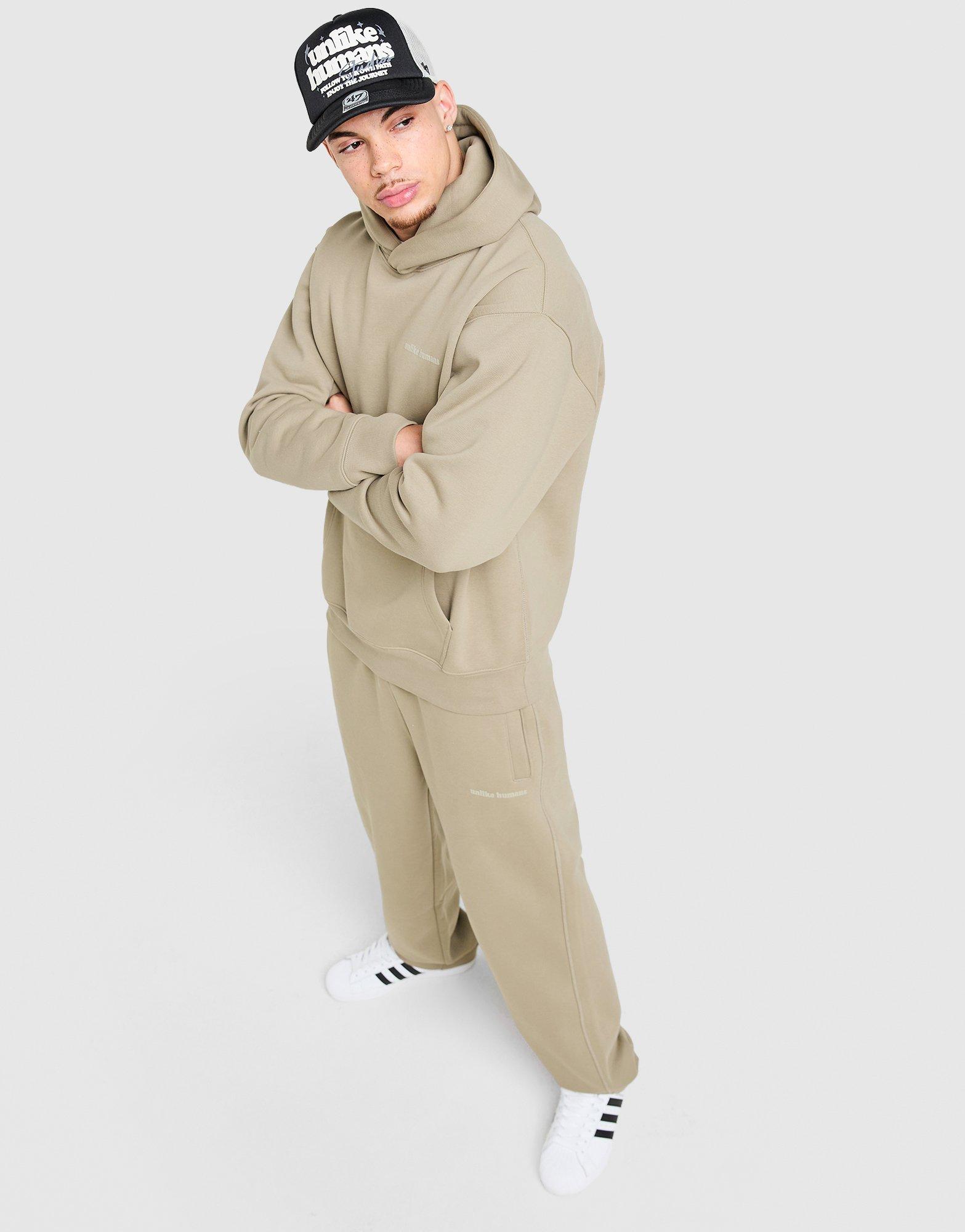Unlike Humans and off-duty days? A winning combo. This men's Ridge Tracksuit is only at JD. In Laurel Oak, the thick cotton blend is brushed soft for a fleecy, warm wear. The oversized fit keeps it laidbak while ribbed trims and a drawcord-adjustable waistband add shape. Tonal Unlike Humans finishes off the hoodie and joggers. Machine washable. | Our model is 6'0.5" with a 38" chest and wears a size M.