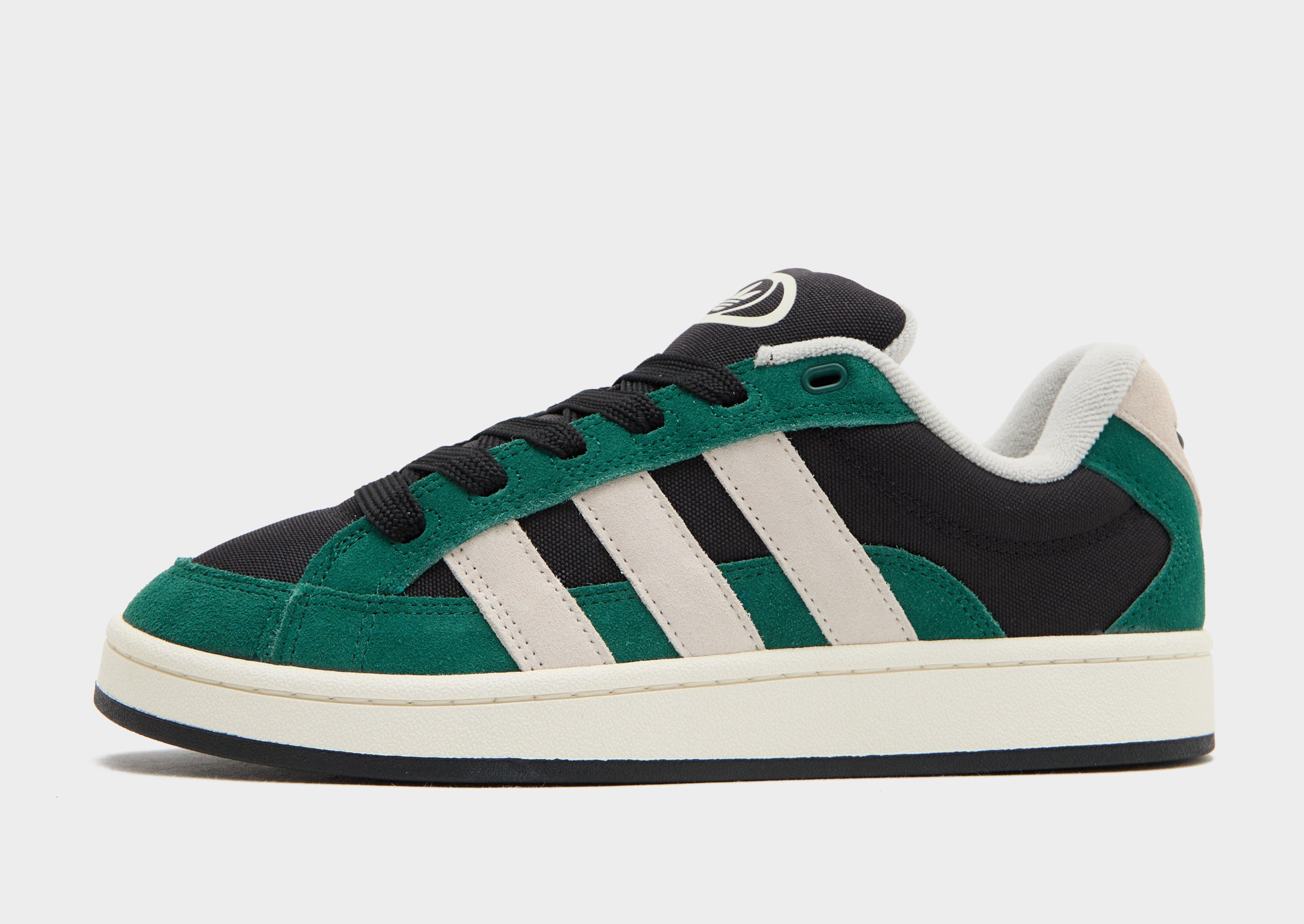 Out of the archives. adidas Originals has levelled up a classic with these men's Campus 00s Beta trainers. Black canvas and Collegiate Green suede layers the upper. Thick padding at the collar and tongue brings the comfort, while the chunky sole sits on grippy rubber. Finished off with a retro Trefoil and the signature 3-Stripes. | JS3793