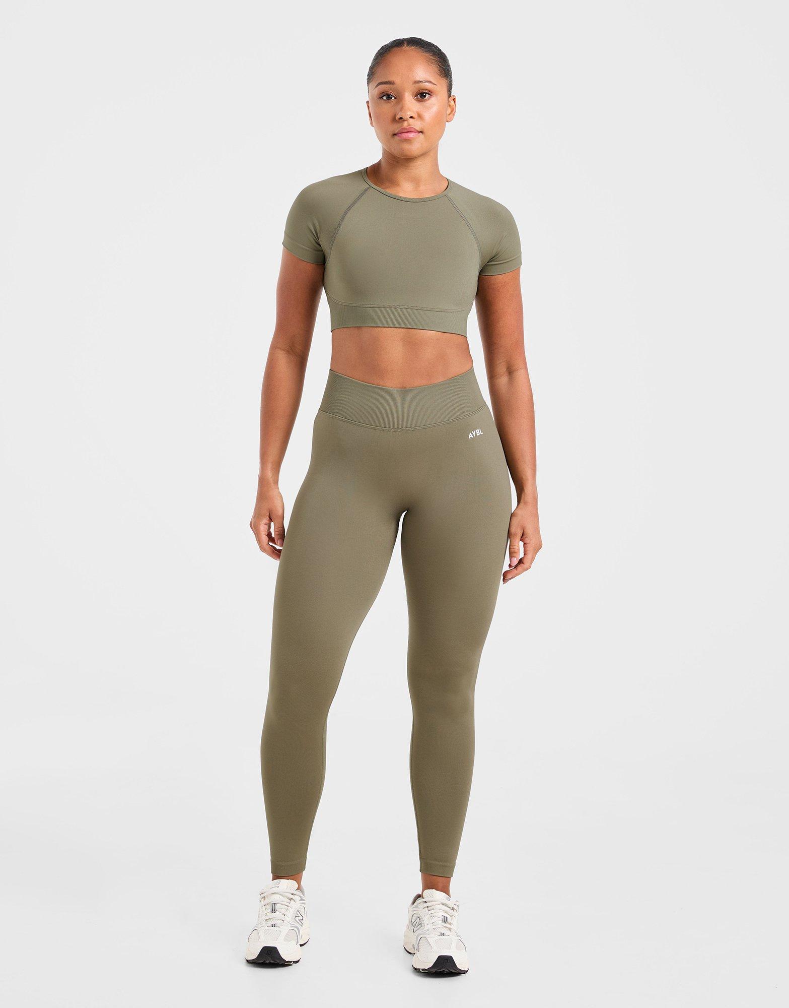 Hit training sessions in these women's Adapt Seamless Leggings from AYBL. In a Mute Olive colourway, these shorts are cut from a soft, seamless polyester-blended fabric for lasting comfort. They feature a mid-rise, elasticated waistband to keep you locked in, with an engineered scrunch knit and enhanced glute contouring for a sleek look. Finished up with signature AYBL branding. | Our model wears a size S.