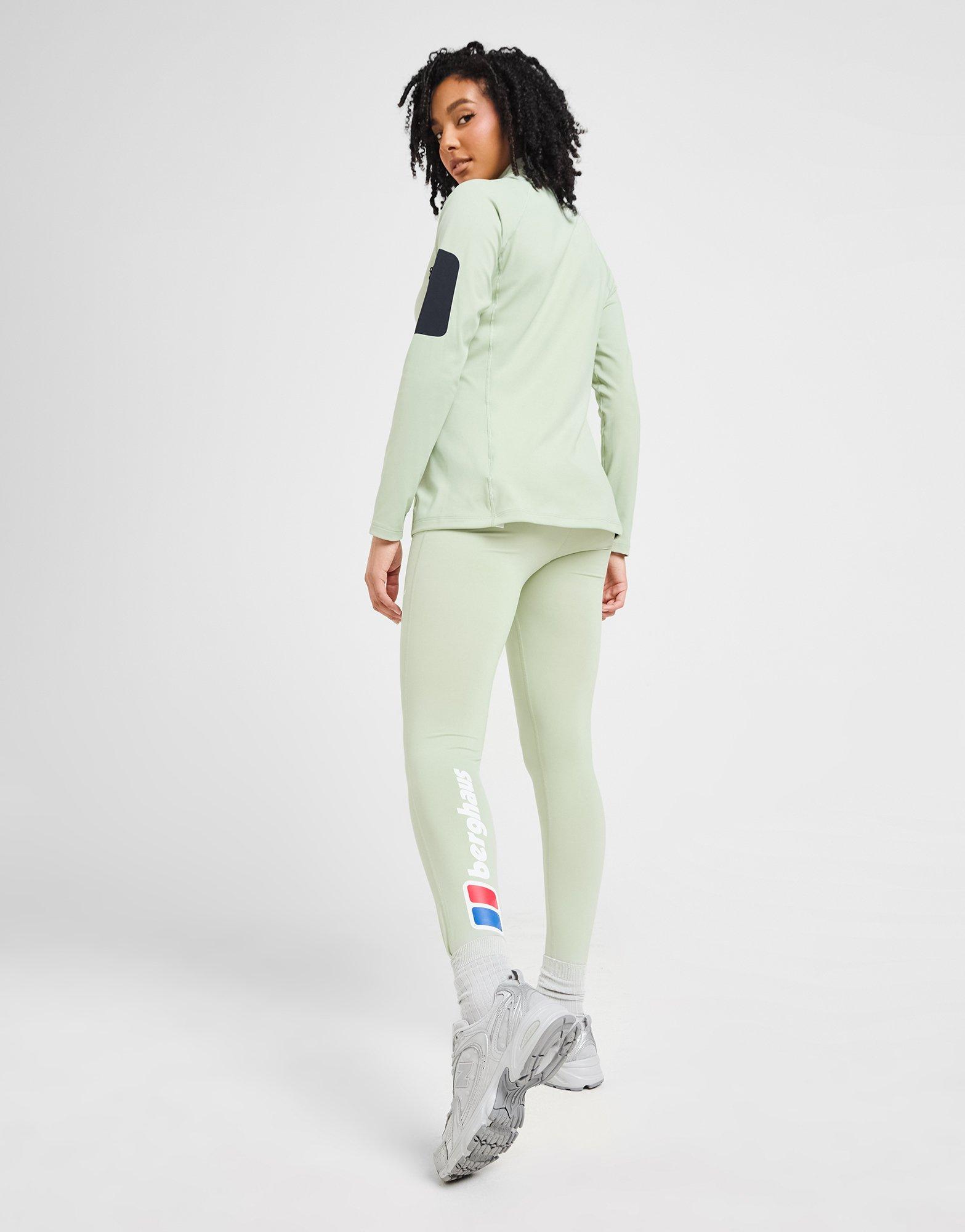 Get a pair that'll go the distance with these women's Large Logo Leggings from Berghaus. Made for exploring, these JD-exclusive tights are built from a stretchy and smooth fabric for figure-hugging comfort. The elastic waistband has a mid-rise fit and lies flat for unrestricted movement. In a Sage colourway, they're finished off with oversized Berghaus branding on the left calf. Machine washable. | Our model is 5'8" and wears a size 8.