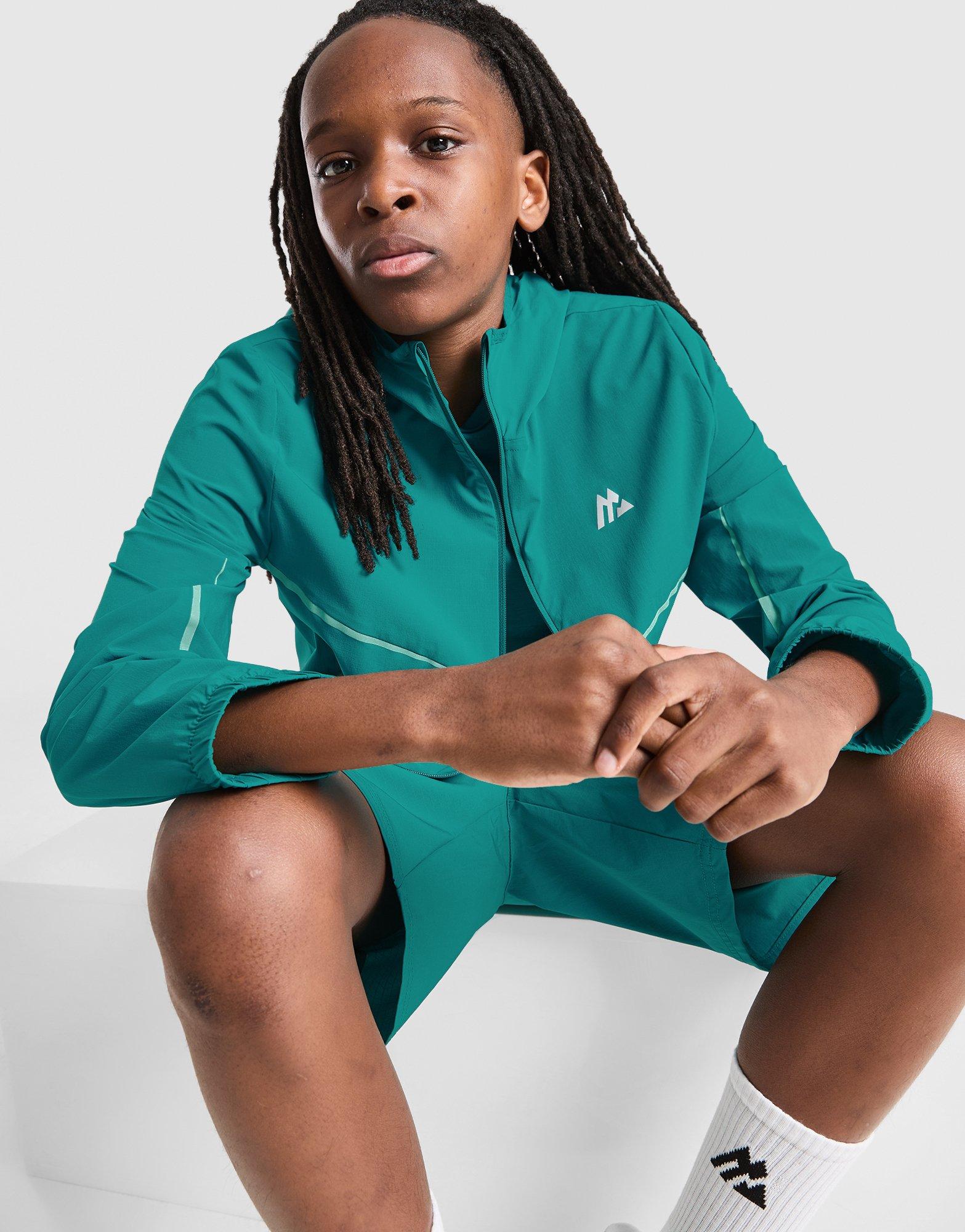Step out in this juniors' Ignite Windbreaker Jacket from Montirex. Cut from smooth, lightweight woven fabric, this standard-fit jacket lands in Lagoon Green. It's got a zip-up fastening with a fixed hood for extra cover, and elastic cuffs for a clean fit. With zipped pockets up front, it's finished up with reflective details and Montirex branding. Machine washable.