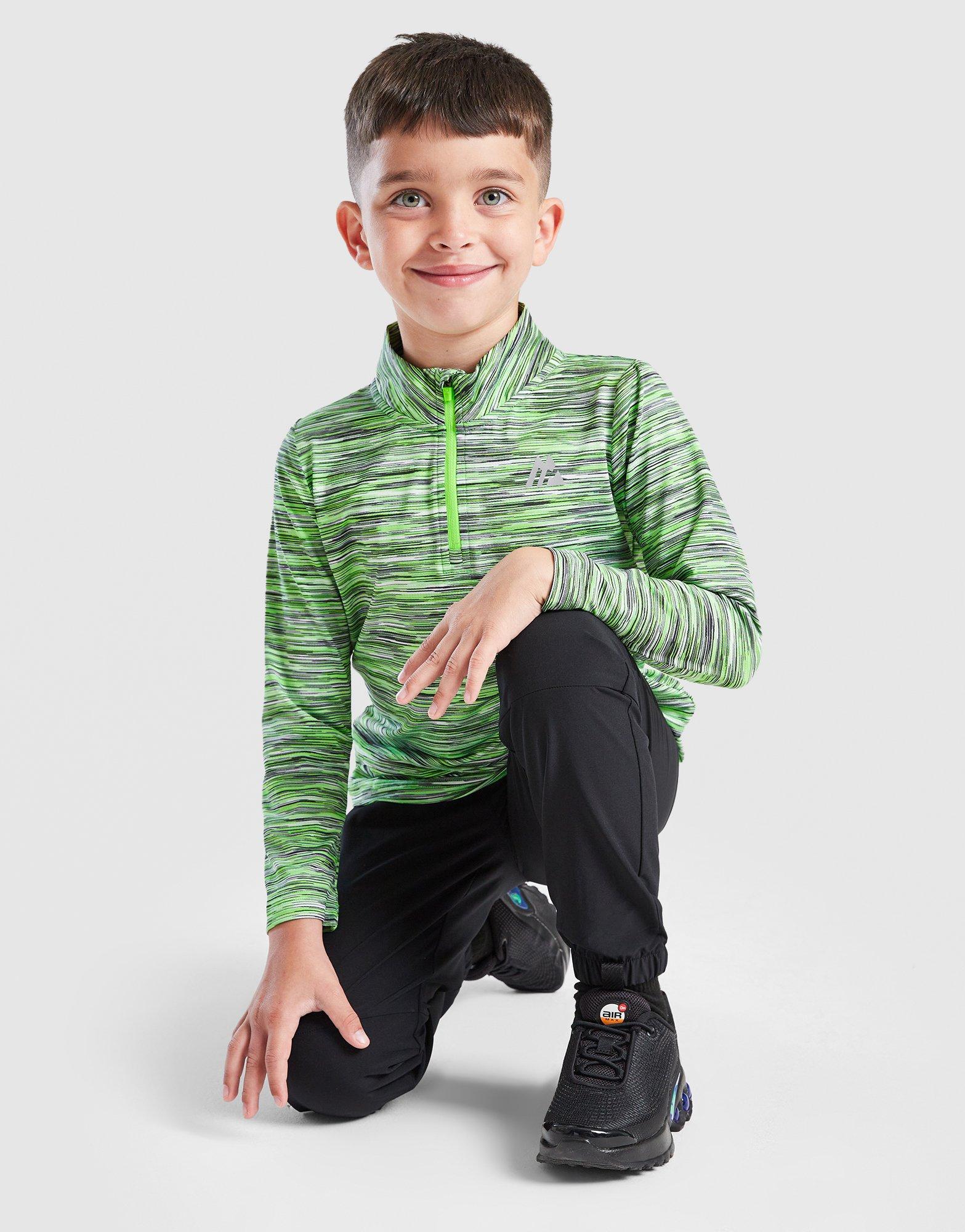 On active days, keep em fresh. This children's Trail 1/4 Zip Top from Montirex is light, stretchy and breathable. JD-exclusive, it features a zip-up fastening for custom coverage. Reflective details keep em seen. Landing in green and black, it's signed off with signature branding. Machine washable.