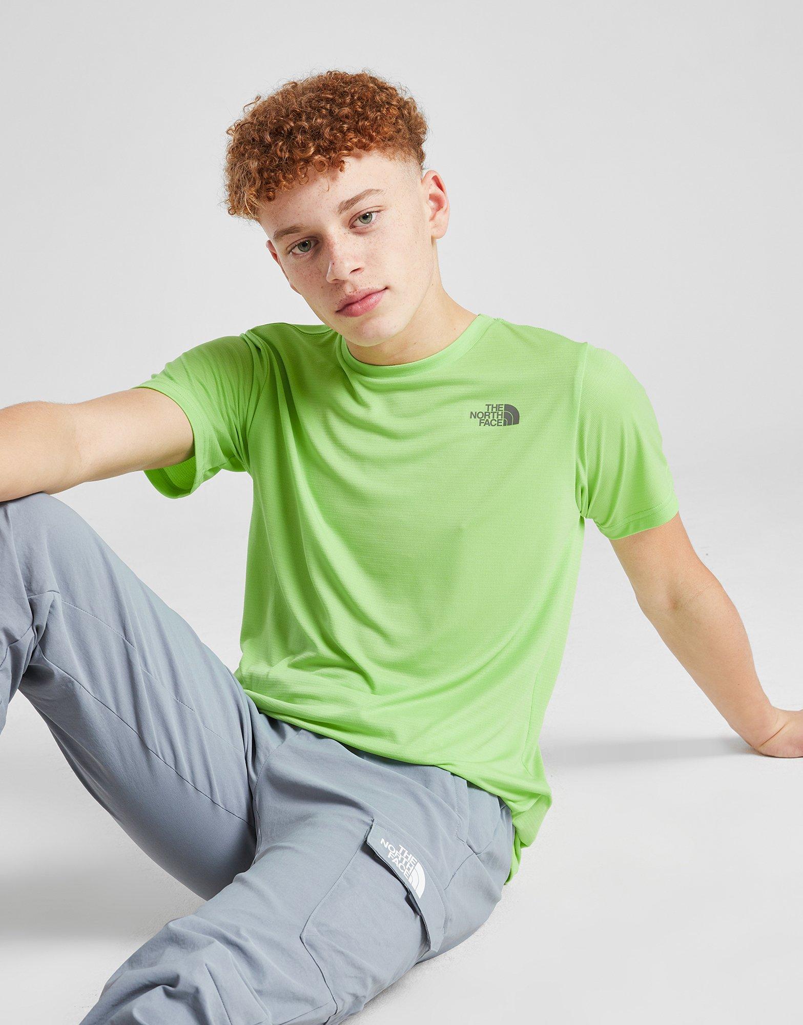 Keep cool at all times with this juniors' 24/7 T-Shirt from The North Face. In a Lime colourway, this JD-exclusive tee is cut from smooth and breathable recycled polyester for total comfort. It features short sleeves with a ribbed crew neckline and is equipped with sweat-wicking FlashDry tech to keep you dry. Finished up with signature The North Face branding to the chest and reverse shoulder. Machine washable.