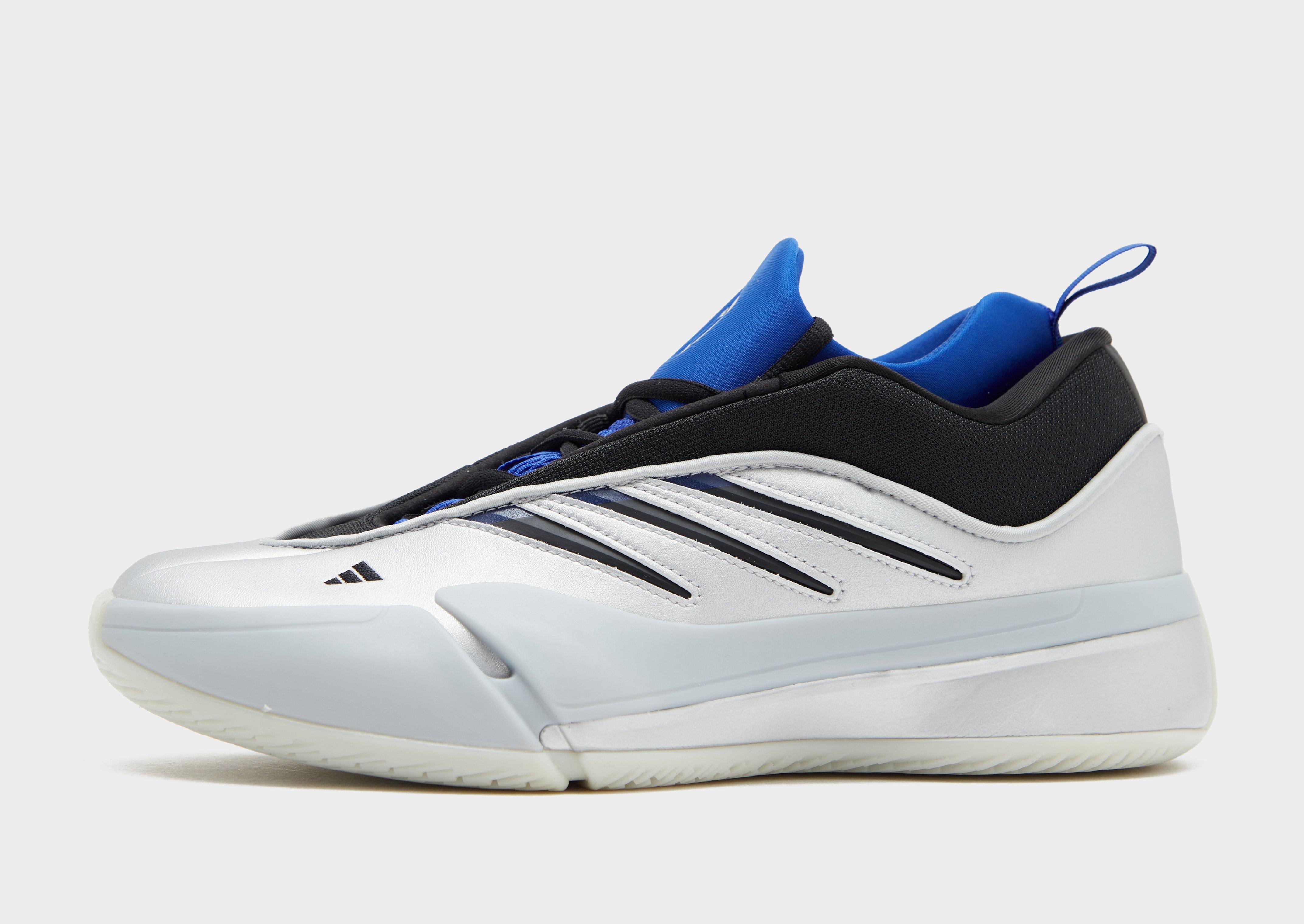 Step into game-changing performance with this men's Dame 9 sneakers from adidas. Built for court superstar Damian Lillard, these basketball shoes land in a Silver Metallic and Core Black colourway to the synthetic and textile upper. The Lucid Blue internal bootie works with the lace closure and heel pull for a snug and secure fit around your foot. Underneath, a full-length Torsion bar delivers support when shifting side-to-side, while the Lightstrike midsole feels ultra-soft, responsive and lightweight as you take flight and land back down. With a rubber outsole for constant grip, they're finished off with the Dame logo on the tongue, angular 3-Stripes to the sidewalls, and the Performance logo at the toe. | JH6633