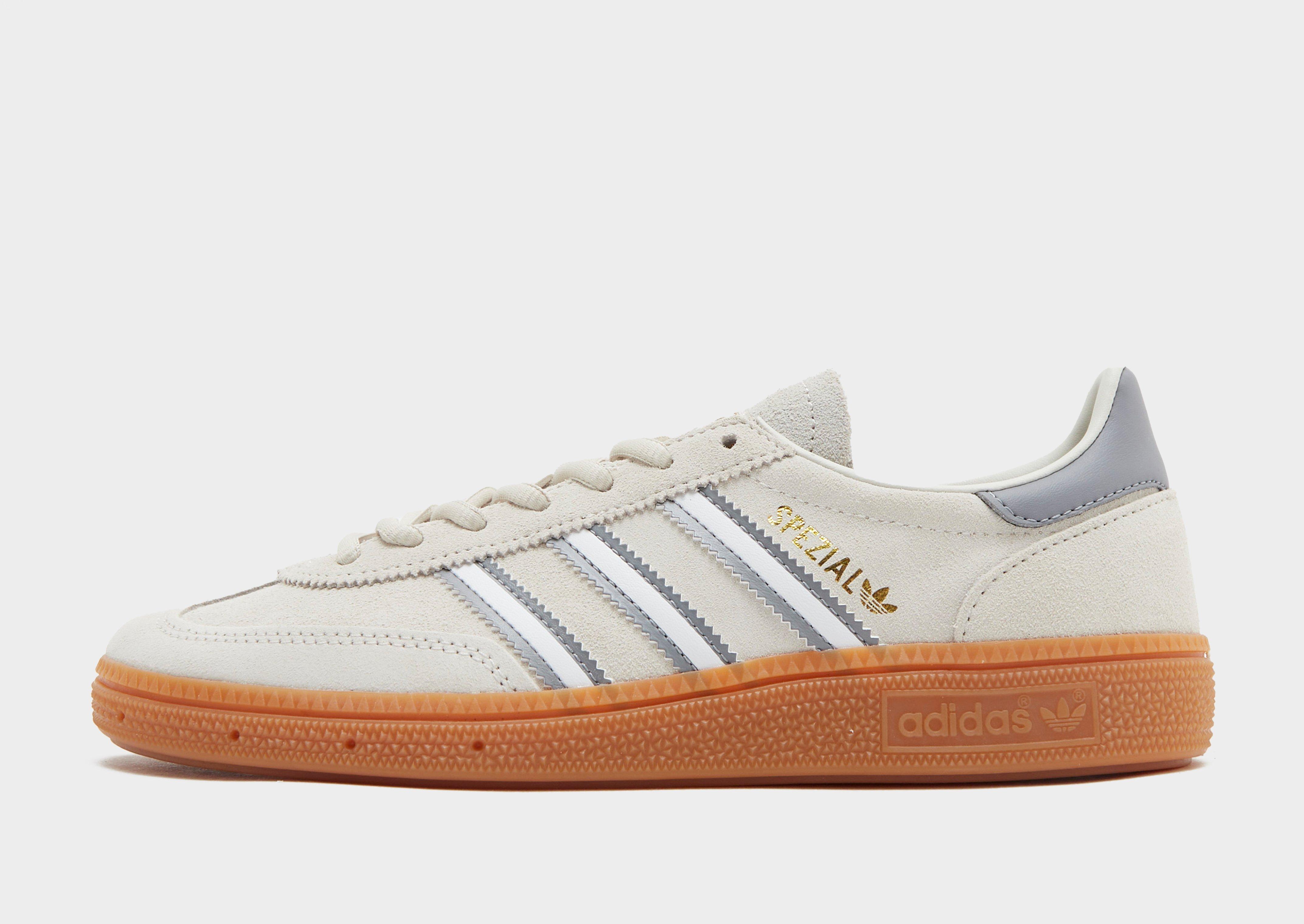Step out in iconic style with these juniors' Handball Spezial trainers from adidas Originals. In an Alumina colourway, these low-profile sneakers have a smooth suede upper and OG T-toe construction. They feature a lace up fastening to lock you in, a padded collar for support and a gum rubber outsole underfoot for firm traction. Finished up with 3-Stripes to the sidewalls, Spezial wordmark branding and the iconic Trefoil logo. | JI0452_